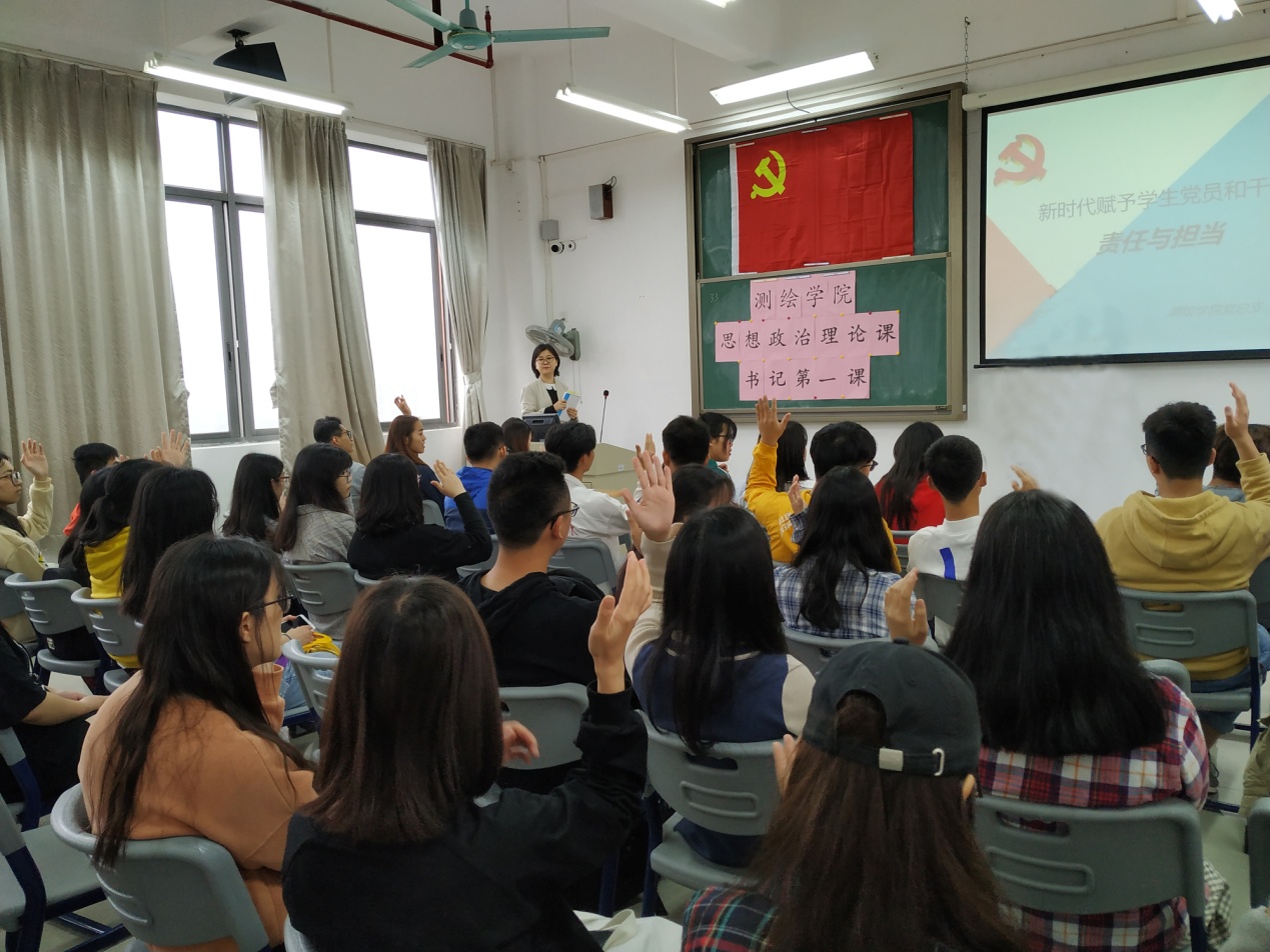 为了不断强化青年学生政治思想引领,教育青年学生认识时代使命、担当时代使命,以坚定的理想信念筑牢精神之基,2019年4月4日上午,测绘遥感信息学院党总支副书记李元为测绘学院青年学生带来了2019年春季思想政治理论“第一课”,2018级测绘地理信息技术专业、房地产检测与估价专业共40多名学生参加了学习。