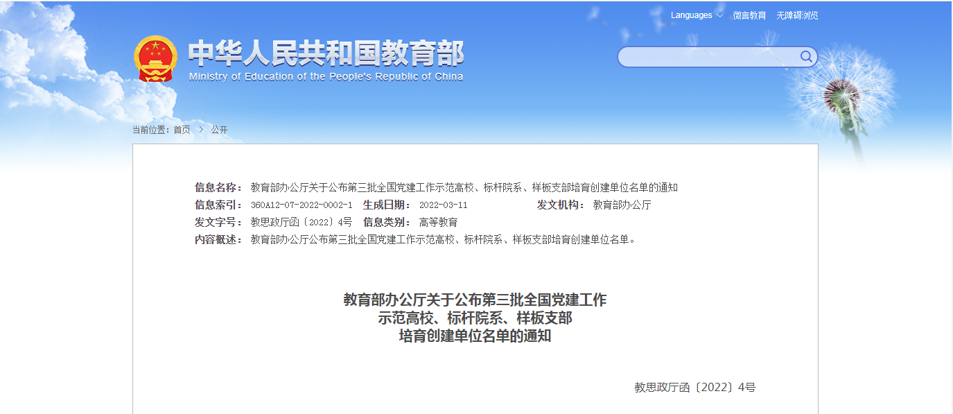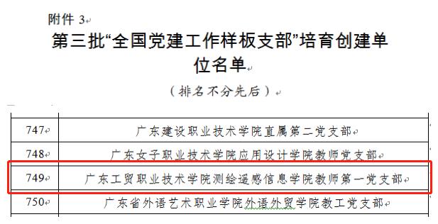 近日,教育部印发通知,公布第三批全国党建工作示范高校、标杆院系、样板支部培育建设单位名单,365官网测绘遥感信息学院教师第一党支部入选了“全国党建工作样板支部”培育建设单位。