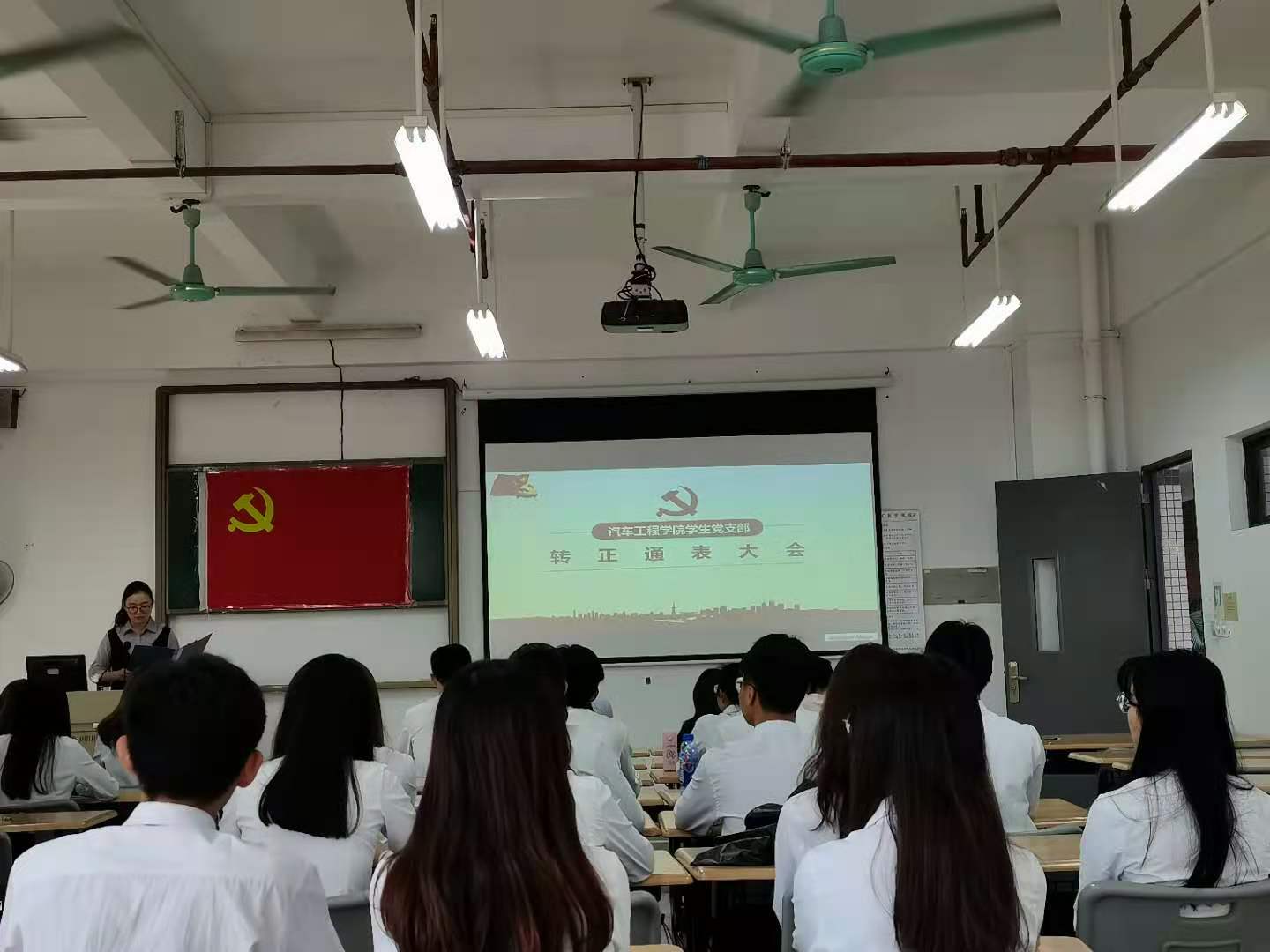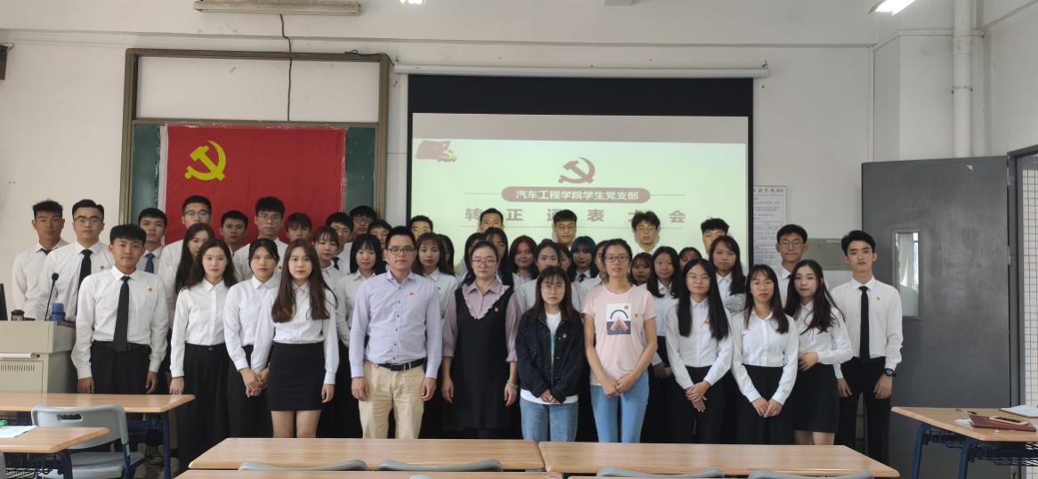 为了深入学习贯彻习近平新时代中国特色社会主义思想和党的十九大精神,学习领会习近平总书记关于加强党的政治建设的重要论述,2020年11月26日下午1点,汽车工程学院学生党支部在明德楼1区312召开预备党员转正大会,对陈绮丹等14名预备党员的转正申请进行讨论。会议由支部书记刘彩云主持,出席本次会议的有支部纪检委员蔡少德以及支部的其他正式党员、预备党员。