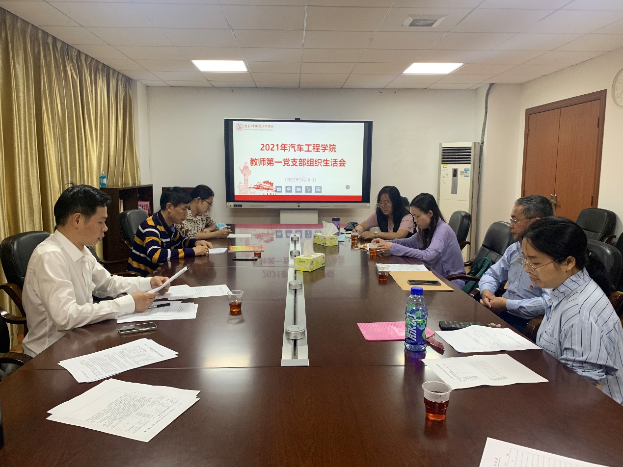 为深入学习贯彻习近平新时代中国特色社会主义思想,根据学校党委的安排部署,3月18日下午,汽车工程学院教师第一党支部在天河校区西区综合楼第一会议室召开了2021年度组织生活会暨民主评议党员会议,会议由支部书记侯益坤主持,支部全体教工党员参加会议。