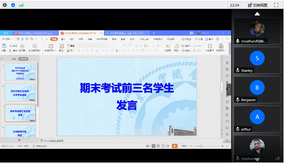 2020年7月10日,365官网在线上举行了2020年春季国际学生汉语语言班结业典礼。