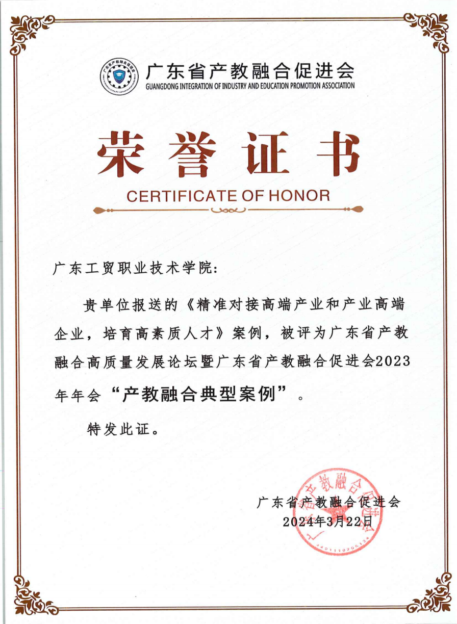 图1 学校荣获广东省产教融合高质量发展论坛“产教融合典型案例”奖