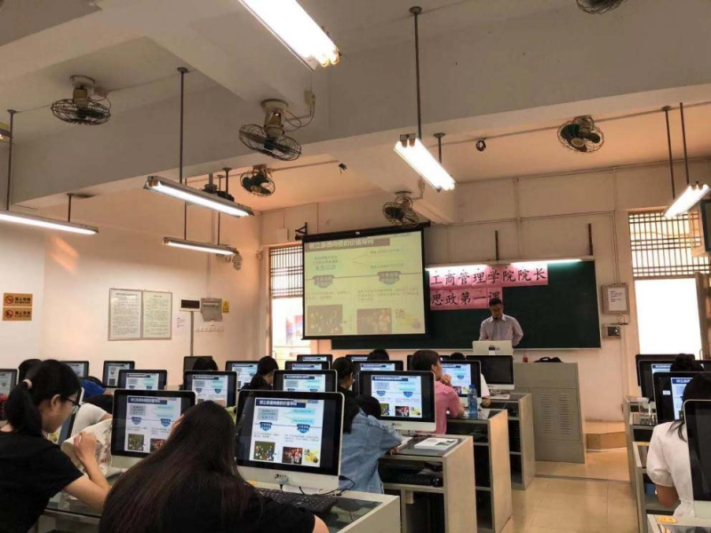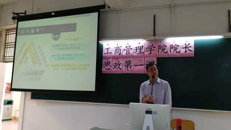 为弘扬社会主义核心价值观,强化青年学生政治思想引领,2019年10月11日,工商管理学院院长邹德军以“新中国成立70周年:社会主义核心价值观的形成和发展”为主题,为19会计1班全体学生上了精彩的思想政治理论“第一课”。
