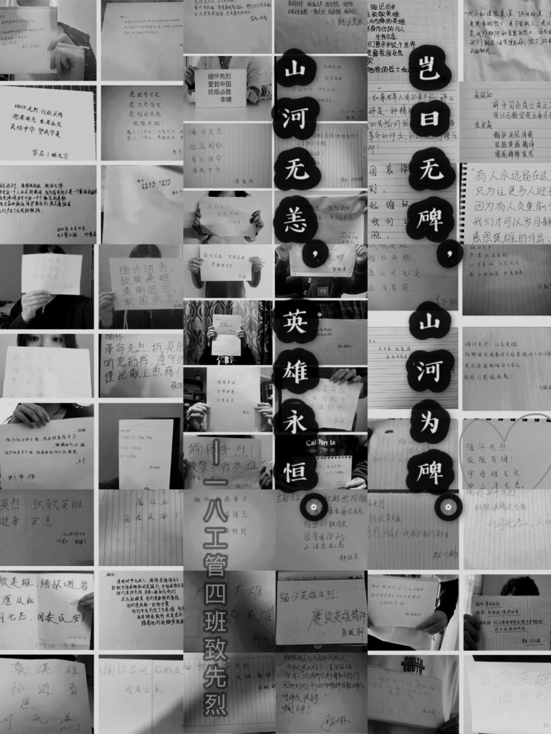 学院各团学组织各展所长,充分利用新媒体技术,在原有品牌活动基础上融入新元素,举办各项文化创作活动,为防疫攻坚战加油打气,歌颂先烈、抗疫英雄们可歌可泣的光辉事迹。其中,党群服务中心开展了主题为“握笔字万千,共写抗疫‘情’”的文化汇活动,以中华民族瑰宝——书法之名,致敬新时代英雄。青年志愿者协会在延续雷锋月系列活动的基础上,发起“同心战“疫”、我们有‘画’说”、 “以文传情,致敬逆行者”系列文化、绘画创作展示活动,致敬一路走来所有的英雄坚守、感谢无数逆行者的日夜奋战,沉痛缅怀逝世同胞。