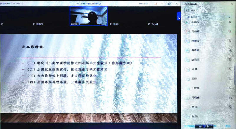 为确保疫情防控期间思想政治工作和教育学习不放松,做好学生返校、就业及教学各项工作顺利开展,5月26日晚,工商管理学院利用Welink召开了全体教职工视频大会。学院领导班子成员,全体教职工参加了会议,会议由学院党总支书记周清莲主持。