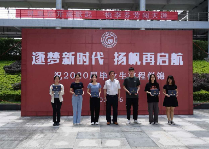 学院在校训广场举行了2020届毕业颁奖典礼。周清莲、谢宏祥分别为“优秀毕业生”、“工贸技师”获得者颁发了证书。邹德军为各毕业班级代表颁发了毕业证书,并祝贺同学们顺利毕业,希望同学们走向社会后可以建功立业,不辜负国家、民族和家庭对自己的殷切期盼,不忘初心、乘风破浪、扬帆起航,争做担当民族伟大复兴大任的时代新人。
