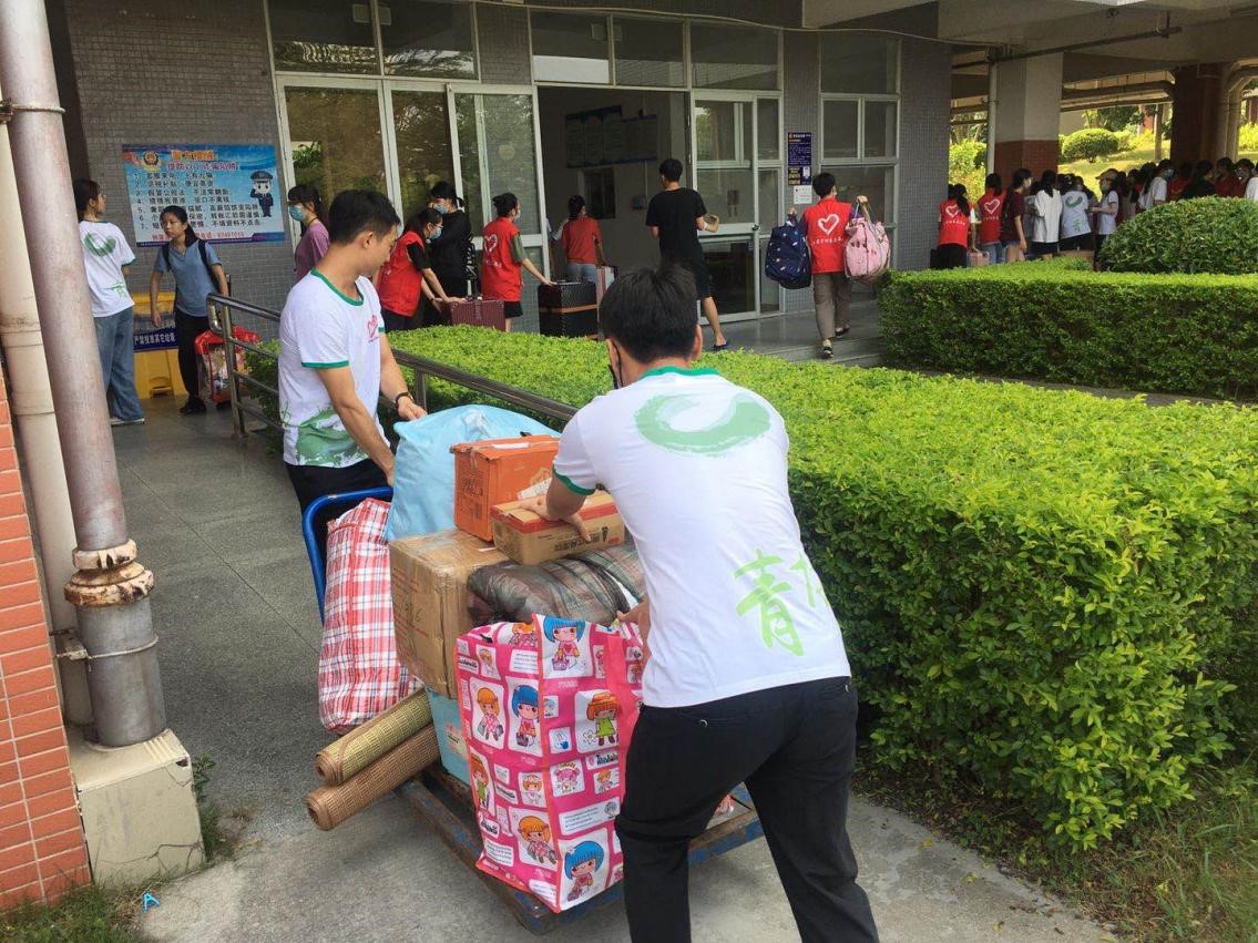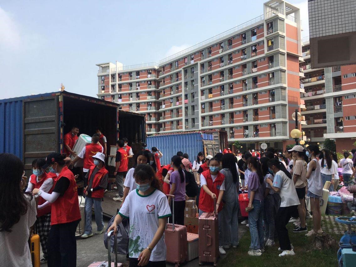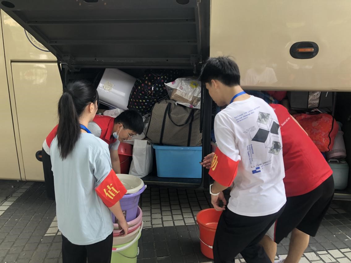 清晨七点,天河校区的学生宿舍楼热闹非凡,可以看到同学们搬抬行李的身影,夹杂在其中身穿鲜红色志愿服的同学在人群中尤为亮眼。大家齐心协力地把所需行李搬运到集合点,最后再把行李运上卡车,过程中没有一丝一毫地怨言。所有同学拧成一股绳,朝着共同的目标共同努力地模样让人动容!