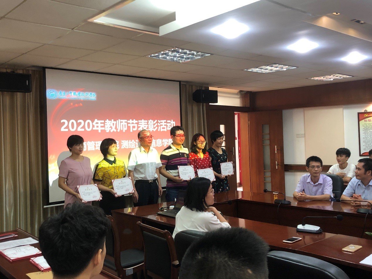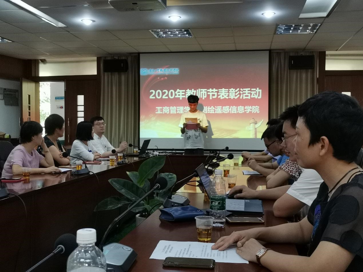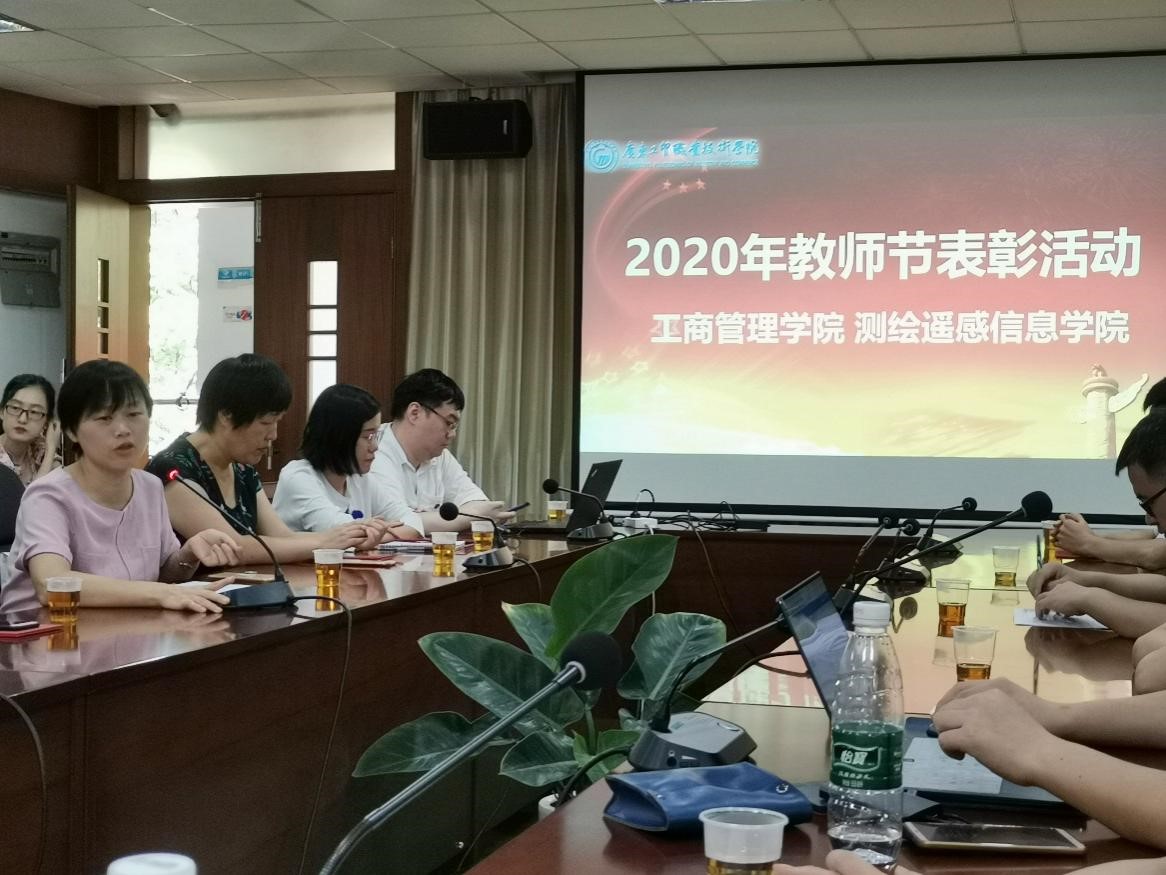 9月9日下午,工商管理学院、测绘遥感信息学院在天河校区中心会议室举行了2020年庆祝教师节表彰活动。党委副书记、纪委书记夏韩辉、工商管理学院及测绘遥感信息学院班子成员、教师代表与学生代表参加了活动,会议由测绘遥感信息学院党总支书记、院长速云中主持。