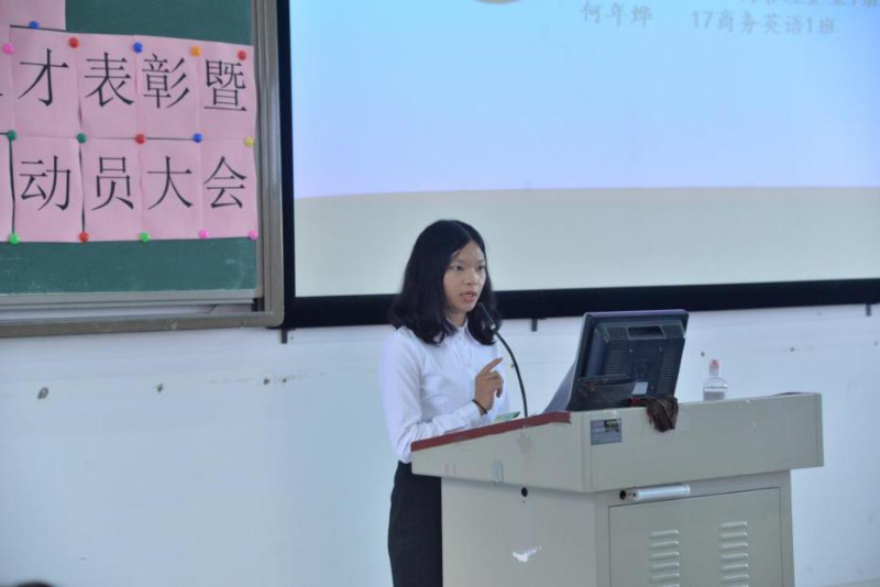 最后,周清莲对大会进行了总结,她首先对获奖同学表示祝贺,她指出,多年来,工商管理学院积极推动与企业深度合作,为全体同学搭建实习实训平台,大力提升学生专业技能水平和综合能力,同学们积极参加卓越班创新人才培养和专项实习实训,敢于挑战、勇于担当,在实践中苦练本领、增长才干,在困难、挫折和磨砺当中收获成长,充分展现工贸“寻真求实、格物致知”的校训精神。她希望全体同学要不断将课堂理论和技能实践结合起来,在学习实践中学会吃苦、学会感恩、学会观察、增长知识、锤炼品格、练就本领,使自己的思维视野、认识水平和技术技能紧跟时代发展,希望全体同学始终满怀青春梦想,不忘初心,勇往直前,朝着自己的人生目标不断奋进。