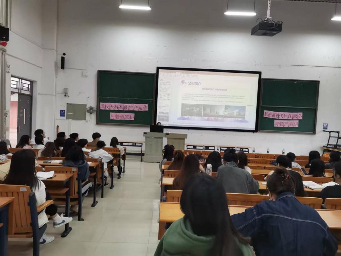 4月25日,应学院的邀请,深圳市重投天科半导体有限公司和深圳市碧柏实业股份有限公司校企合作、产教融合企业宣讲会在白云校区明德楼2-104和2-306召开。工商管理学院21级工商企业专业、21级人力资源管理专业和21级现代物流管理专业的全体学生参加。深圳市重投天科半导体有限公司的方经理、深圳市碧柏实业股份有限公司王倩经理先后分别就公司的基本情况、岗位需要、工作条件、待遇等向与会同学一一做了介绍。