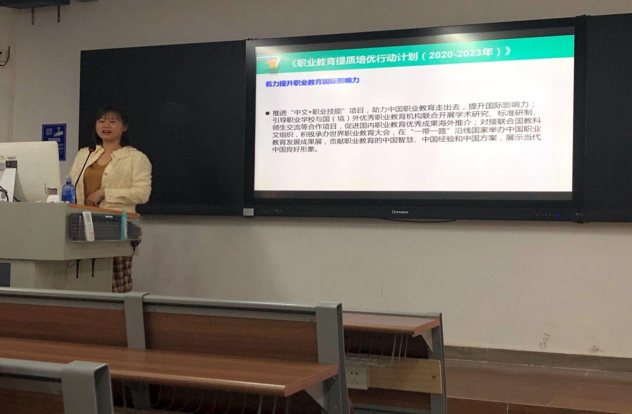 系副主任倪利组织学习《职业教育提质培优行动计划(2020-2023年)》。她从“回头看”的角度,结合学院或者学校实际,深入解读了行动计划的核心内容。此外,她结合现代物流管理专业与广州顺丰速运有限公司开展产教融合的实例,与老师们生动分享了校企合作历程以及产教融合取得的成绩,为专业建设打开新的视角。