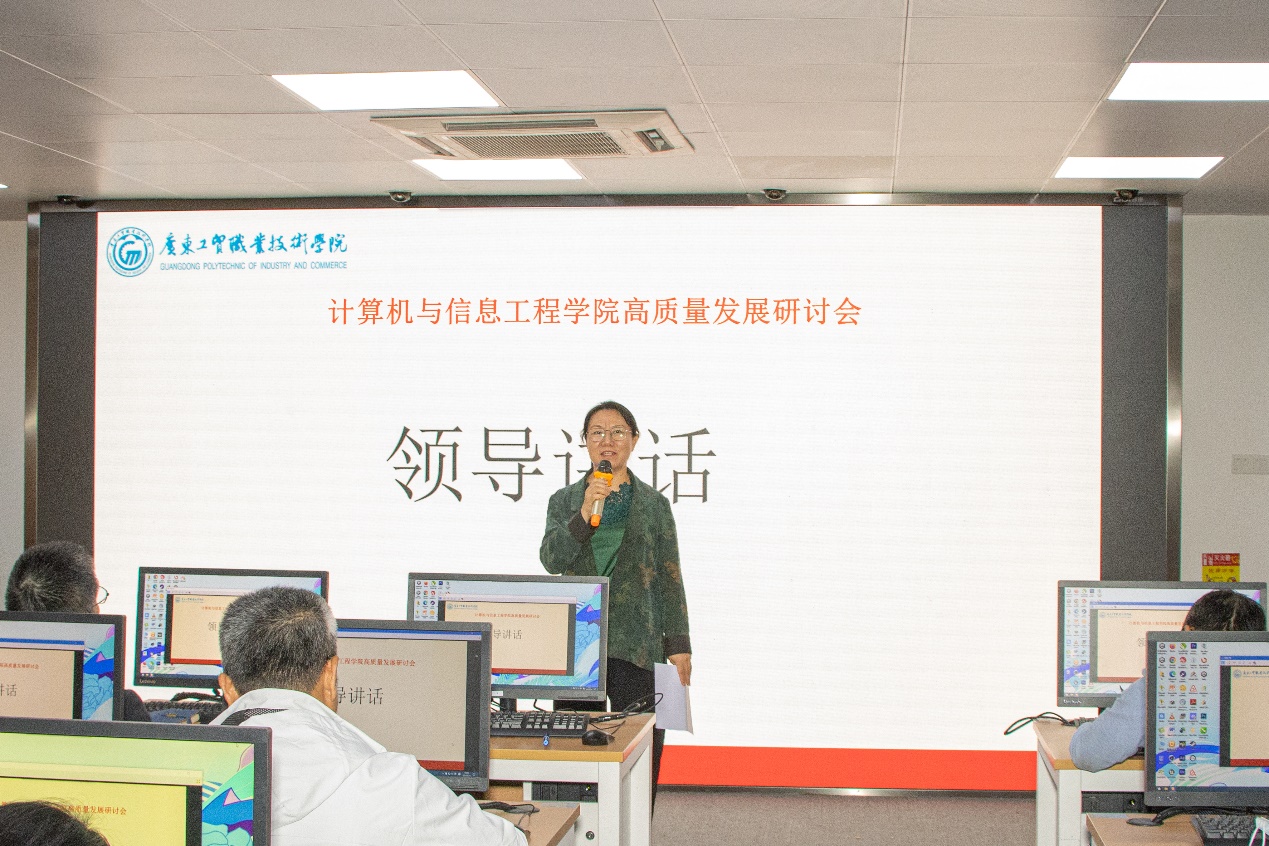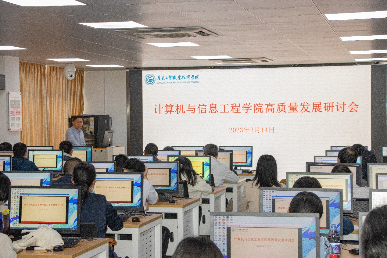 为深入贯彻落实党的二十大精神,紧跟学校高质量发展工作开展的步伐,3月14日下午,在天河校区东区实训楼202,计算机学院召开了学院高质量发展研讨会。出席会议的领导有学校党委副书记赵红,计算机学院院长余棉水,计算机学院党总支副书记张艳、计算机学院副院长单家凌和鲁庆,以及我院全体教职工参加此次研讨,会议由余棉水主持。