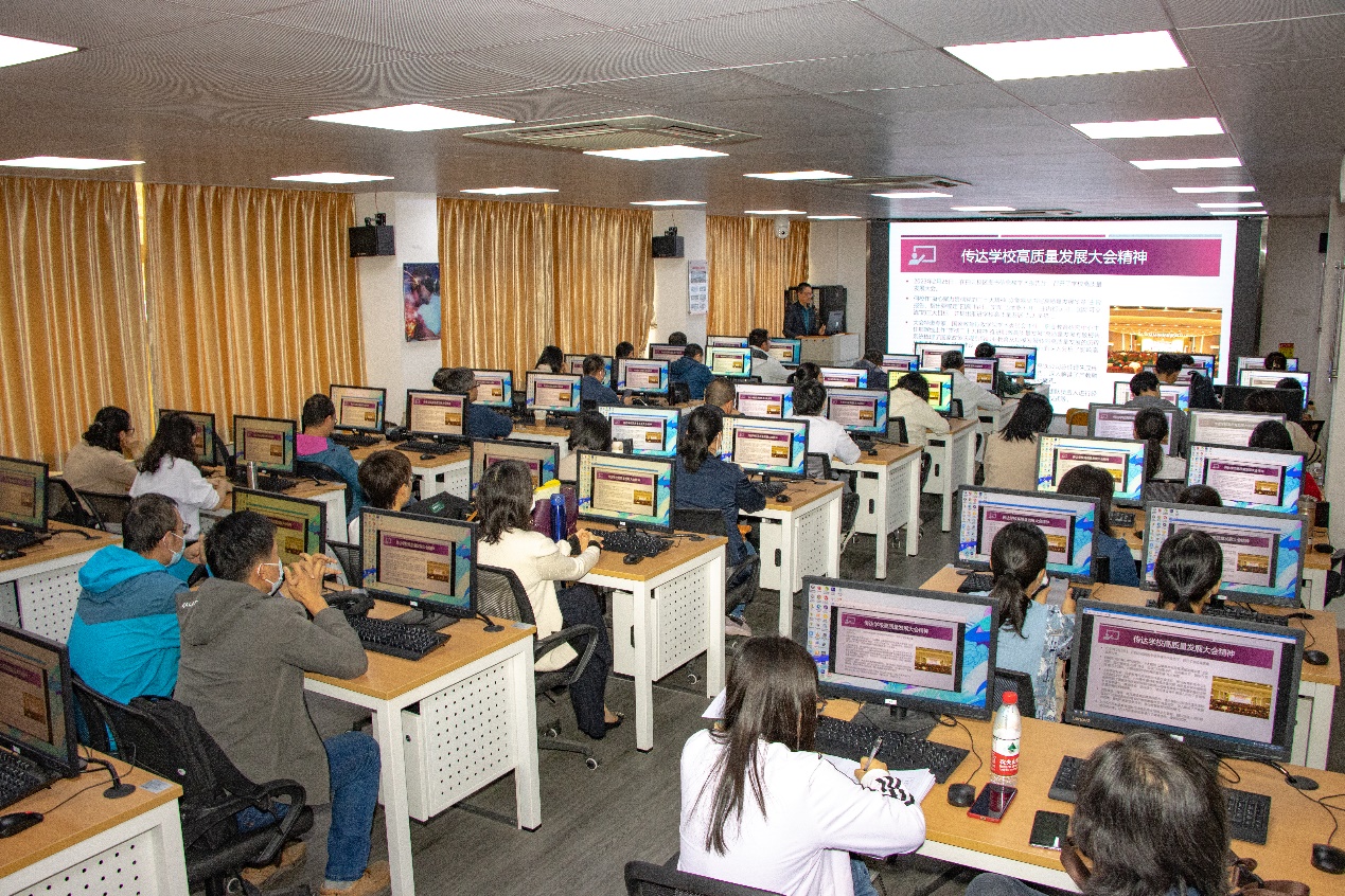余棉水传达学校高质量发展大会