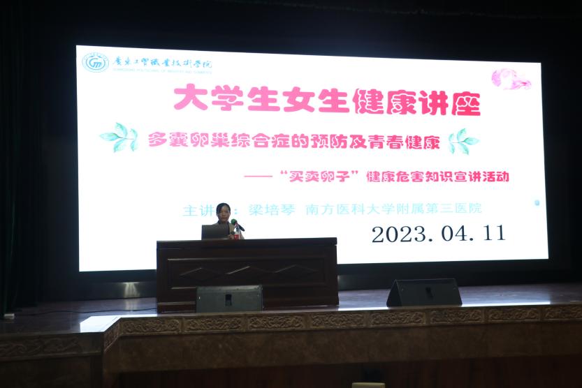讲座中,南方医科大学第三附属医院梁培琴主治医师结合自身十余年妇产科的工作实践,用丰富的理论知识,结合多年的临床经验,围绕“非法代孕”与“买卖卵子”危害及防范、“多囊卵巢综合征”的治疗及预防、大学生心理健康等方面进行详细讲解,生动形象地列举了相关事例,呼吁广大学生增强自我保护和自我关爱意识,以健康、快乐、积极的心态对待学习和生活。讲座内容丰富、深入浅出、通俗易懂,具有很强的针对性和实用性,切实普及学生健康知识,有利于提高大学生掌握生理健康知识,增强自我保护意识。