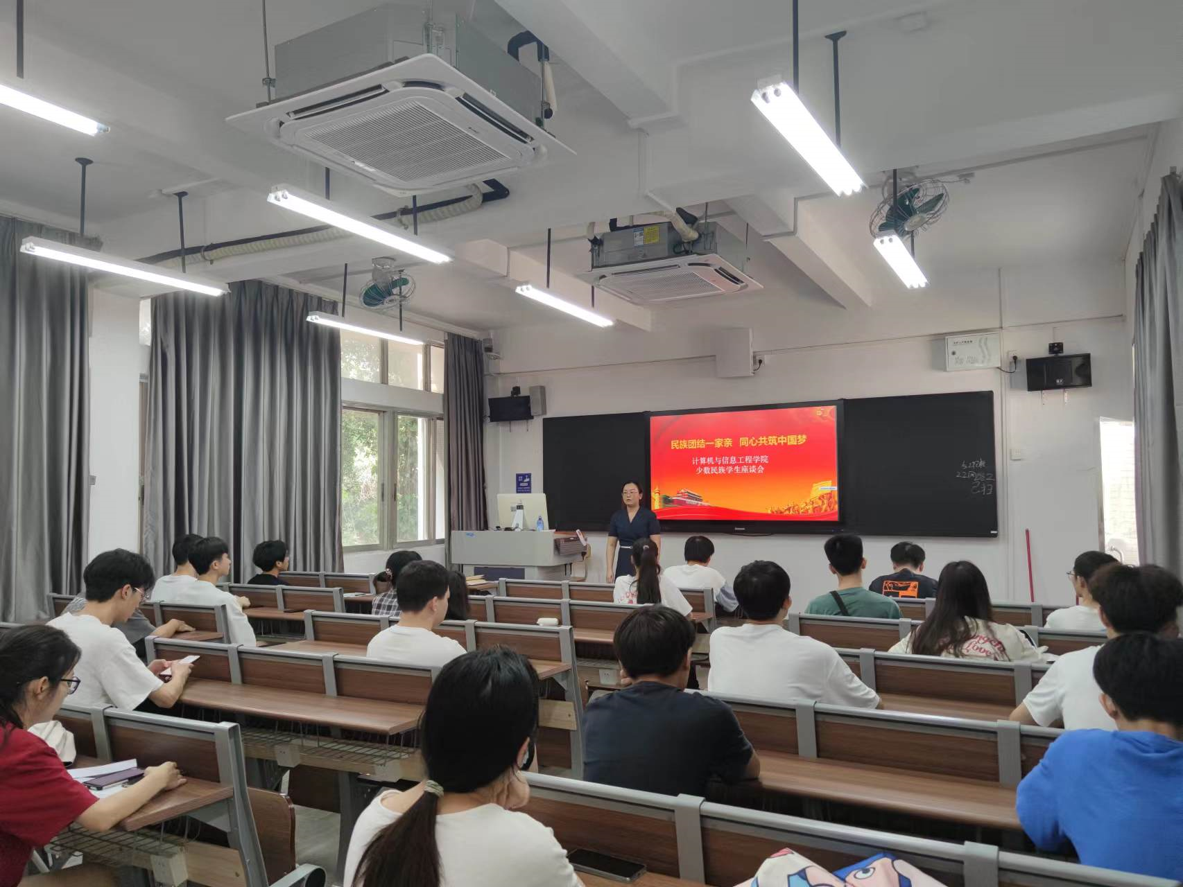为深化民族团结进步教育工作,表达对少数民族学生的关爱,激发少数民族学生的爱党爱国爱校热情,根据《365英国上市官网在线少数民族学生教育管理服务办法》,计算机与信息工程学院于5月30日下午在教学楼201室召开了全体少数民族学生座谈会,学院党总支副书记张艳出席了会议。会议由辅导员苏建荣主持。