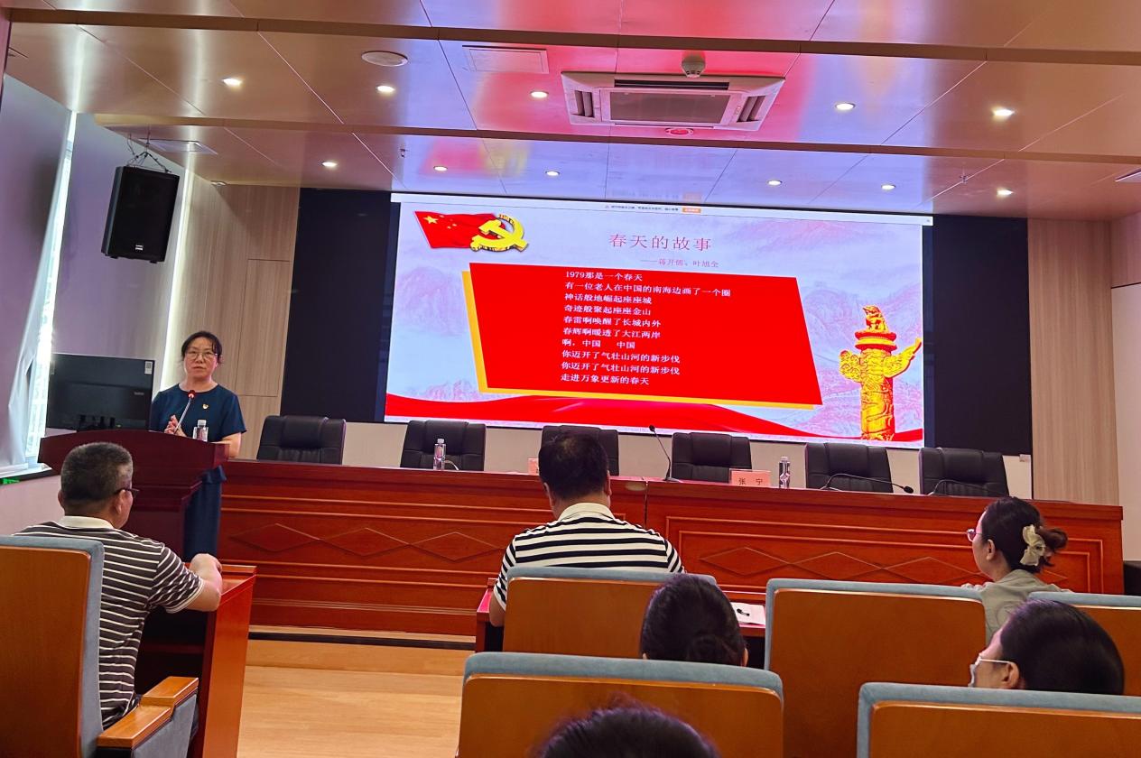 课上,赵红以《学习贯彻习近平总书记视察广东重要讲话精神-将改革开放进行到底》为主题,重温了习近平总书记视察广东的重要讲话精神。广东是改革开放的排头兵、先行地、实验区,在中国式现代化建设的大局中地位重要、作用突出。其次,广东要锚定强国建设、民族复兴目标,围绕高质量发展这个首要任务和构建新发展格局这个战略任务,在全面深化改革、扩大高水平对外开放、提升科技自立自强能力、建设现代化产业体系、促进城乡区域协调发展等方面继续走在全国前列,在推进中国式现代化建设中走在前列。