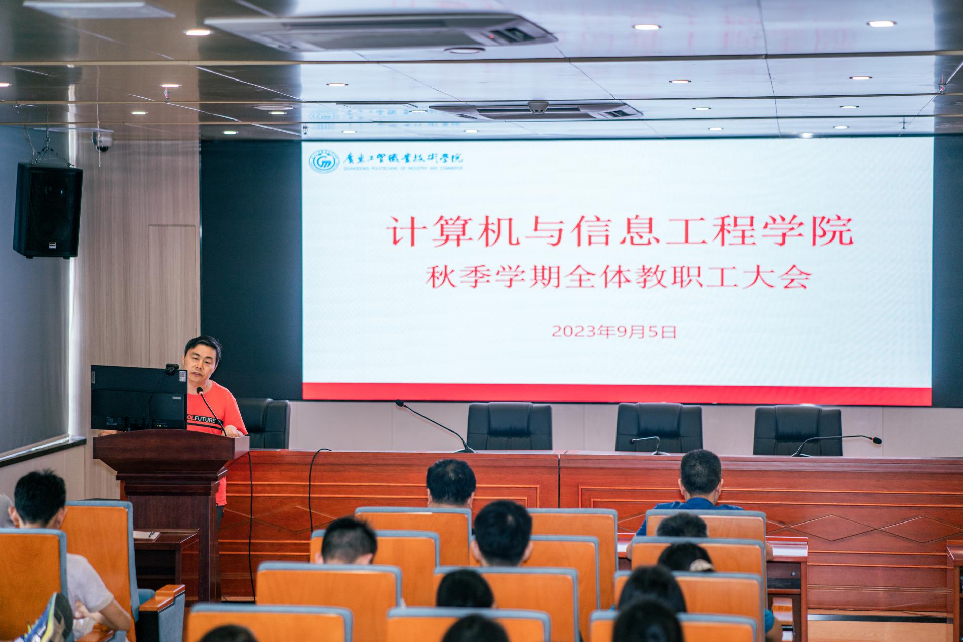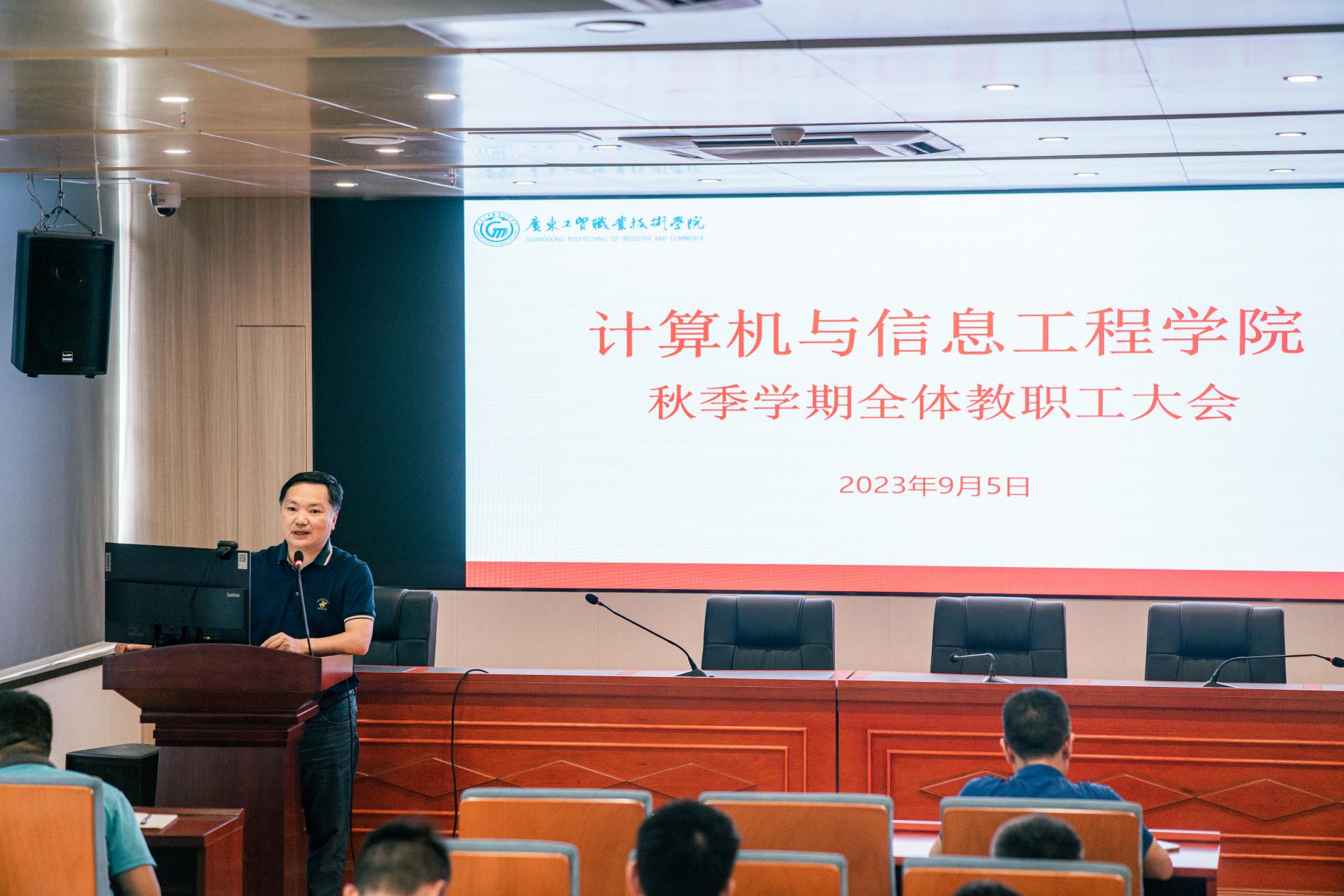 为了学院新学期工作的顺利开展,计算机学院于2023年9月5日在天河校区东区实训楼报告厅召开新学期教职工大会,学院领导班子及全体教职工参与会议。