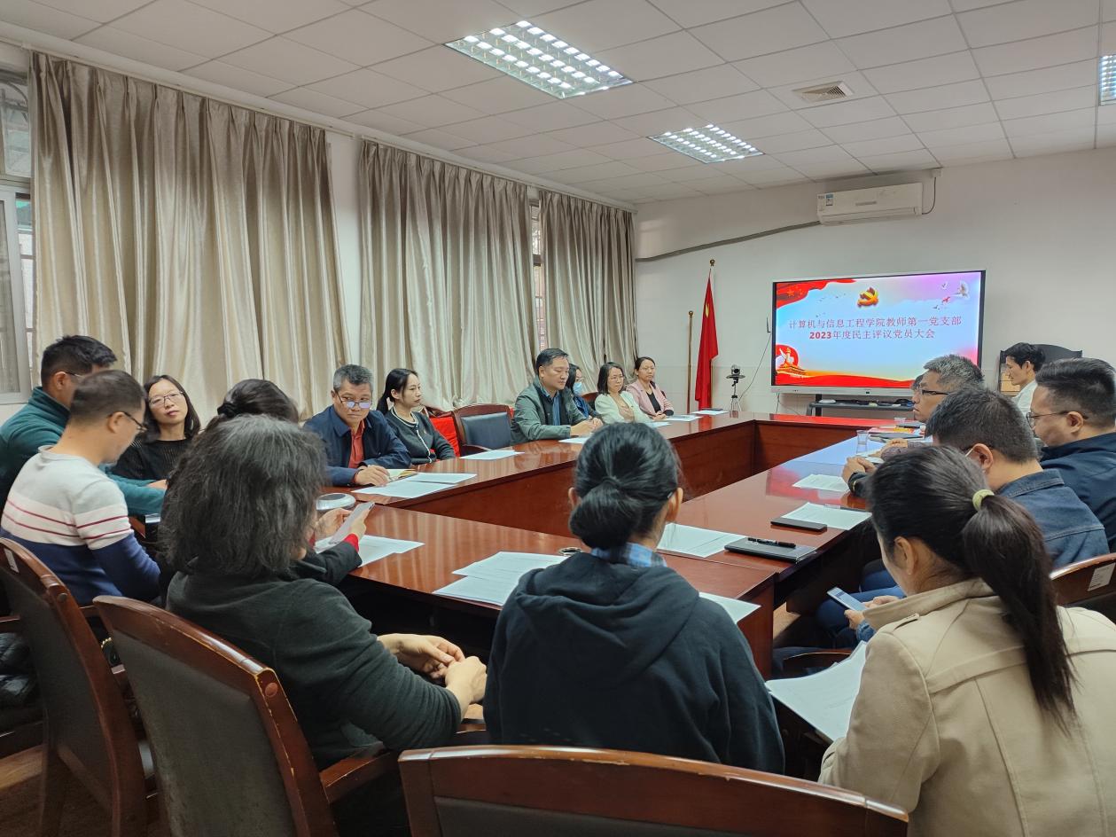 根据学校《关于开展2023年度民主评议党员工作的通知》(粤工贸院党字〔2024〕2 号)要求,计算机与信息工程学院教师第一党支部于1月15日上午在东区教104召开支部会议,开展民主评议党员工作。会议由支部书记周宇主持。