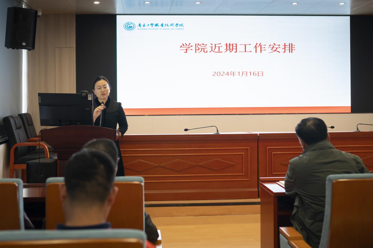 集中学习之后,副院长鲁庆传达了学校《关于做好元旦、寒假及春节期间正风肃纪工作的通知》及《关于开展校园安全隐患排查工作及“安全教育周”活动的通知》,并就2023年我院技能竞赛等工作进行了总结。副书记张艳回顾了2023年毕业生就业情况,对2024年促进毕业生就业工作进行了动员和部署。