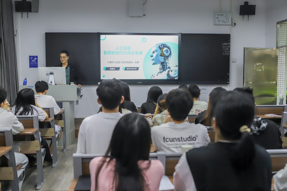 最后,余棉水指出,人工智能的不断发展将为同学们带来机遇和挑战。我国拥有庞大的市场规模和丰富的人才资源,为人工智能发展提供了良好的基础,同学们要抓住机遇,迎接挑战,积极投身祖国科技创新,推进国家高质量发展。