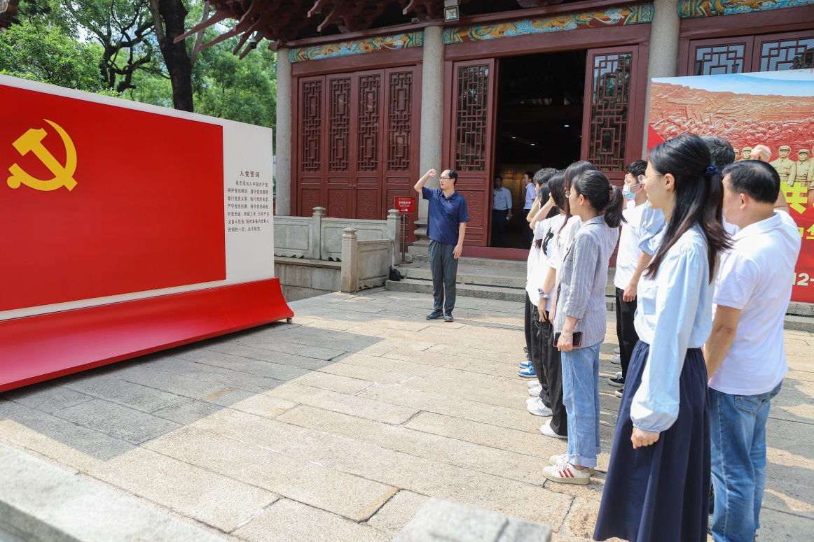 来到农讲所,两个党支部首先共同举办了新党员宣誓,老党员重温入党誓词。全体党员列队面向党旗,进行庄严宣誓。通过宣誓活动,新党员更加坚定了为共产主义事业奋斗终身的理想信念,提高了党员意识和党性观念,增强了以实际行动践行对党的承诺的自觉性和坚定性。