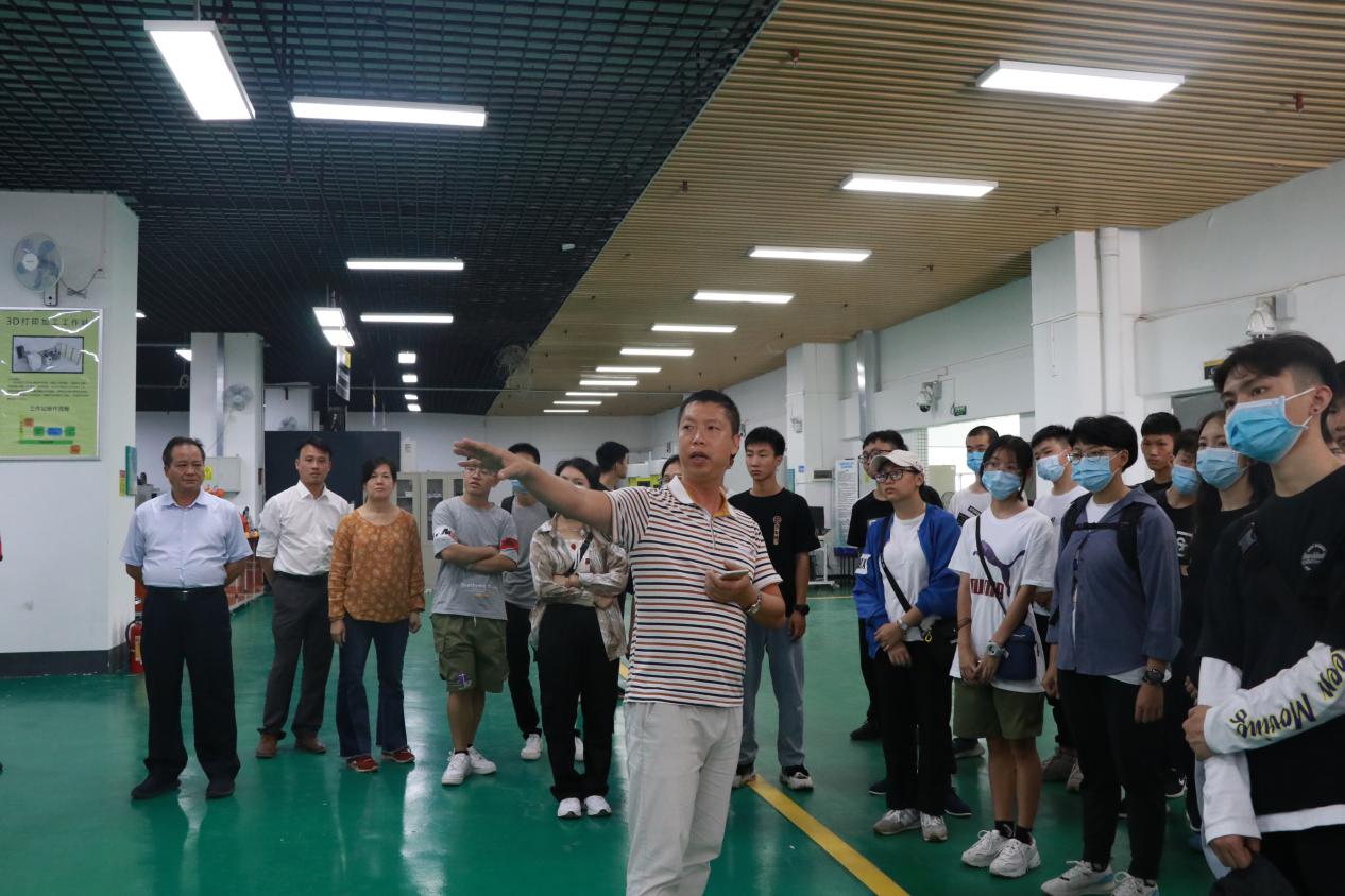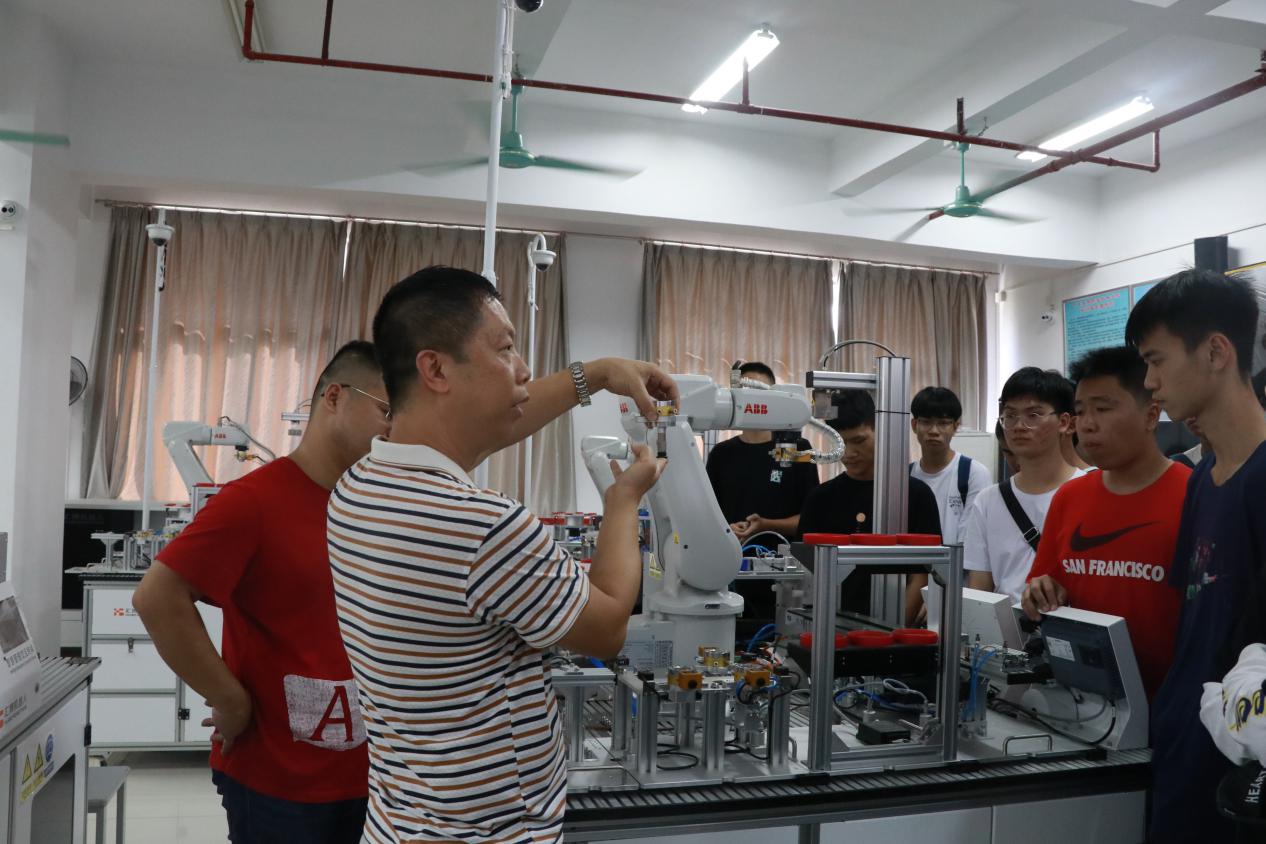 当天下午,为了让新生深入了解自己的专业,激发他们的学习兴趣。机电学院分批组织新生参观了学院现代制造中心实训基地。新生分批参观了智能制造生产线、机器人系统集成实训室、高速与多轴加工实训室,1+X证书工业机器人应用编程实训室等实训室。由现代制造中心卢伟明、宋显文老师担任主讲。两位老师讲解了参观注意事项及实训室的整体情况、设备的基本工作原理并进行实际演示。同学们细心聆听老师的讲解,仔细观摩,遇到不懂的问题积极和老师沟通,针对各个专业的差异,老师尽量用通俗易懂的语言解答疑惑,力图让新生学习更多知识和了解更多实训设备。此次参观,加深了新生对所学专业的认识,为以后的学习打下良好的实践基础。既向同学们展现了我院实训室教学仪器设备的完善,也扩大了同学们的视野,调动了同学们的学习积极性,同时激发了同学们的学习热情。