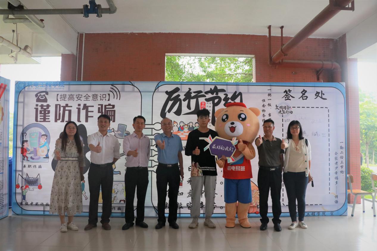 新生注册手续办理后, “易班”玩偶熊带领新生前往“厉行节约”、“网络安全教育活动”专栏签名榜,新生签名后拍照发“易班”参加抽奖活动,通过活动引导新生努力弘扬中华民族勤俭节约培养良好节约习惯,将“节约粮食,从我做起”的节约意识转化为节约行动,积极做节约粮食的传播者和实践者;让新生了解防诈骗知识、增强新生防诈骗意识,谨防上当受骗。