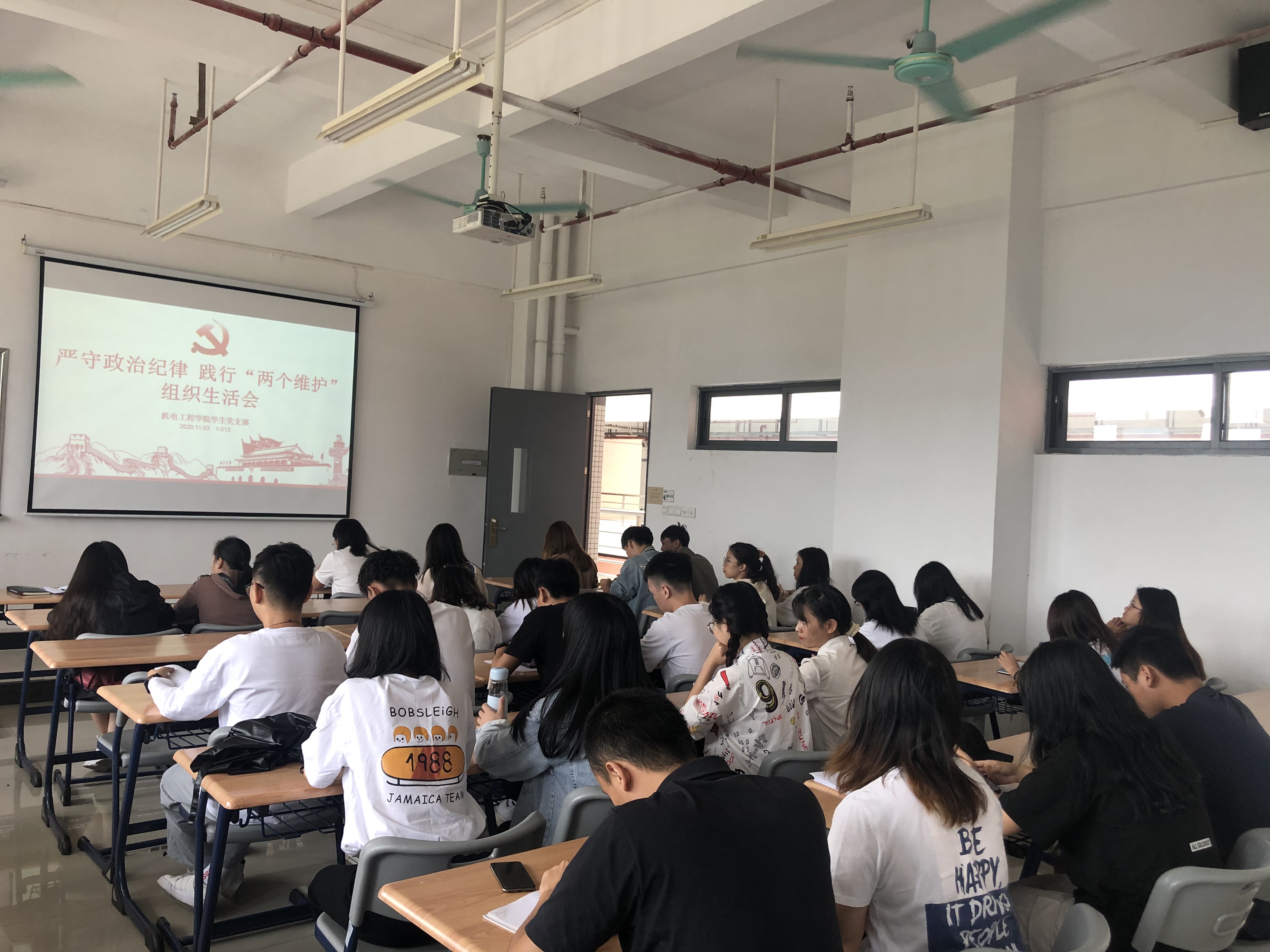 2020年11月3日下午14:00,机电工程学院学生党支部在明德楼1区513召开主题为“严守政治纪律 践行‘两个维护’”组织生活会,出席本次大会的有机电工程学院学生第一党支部书记李慧颖同志、支委武晓翠同志、邵盼盼同志、覃才尧同志和全体学生党员。