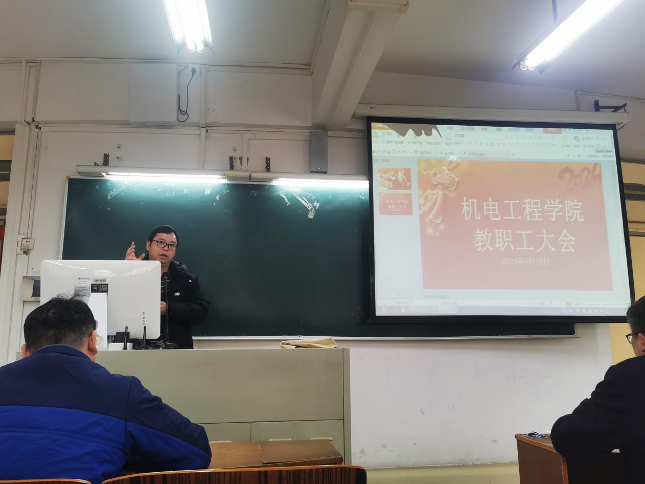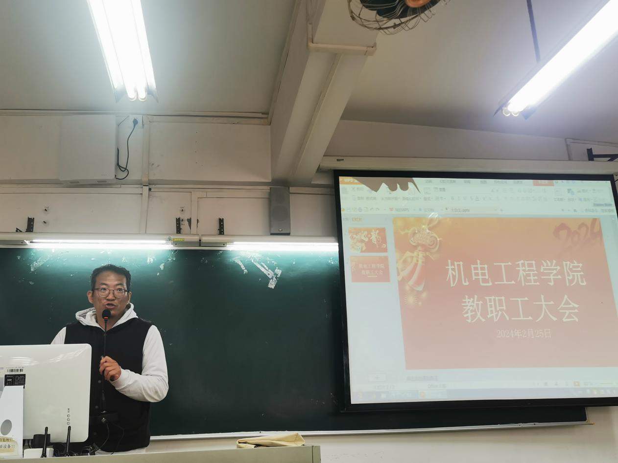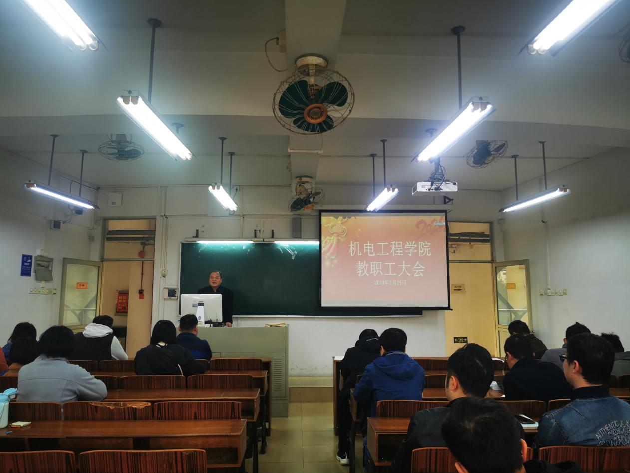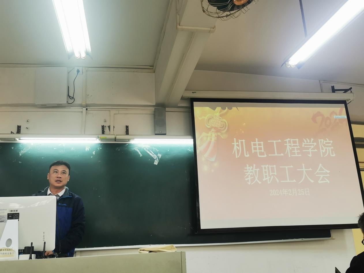 一元复始砥砺深耕,万象更新扬帆起航。新的学期伴随着新春如约而至,2024年2月25日下午2点10分机电工程学院在天河校区西区406室召开全院教职工大会。全体教职工参加会议,会议由机电工程学院党总支书记邵超城主持。