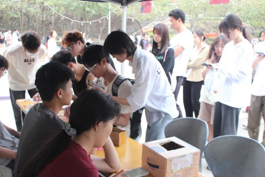 工作人员提前布置好活动场地,准备好活动的相关物品,积极引导学生参加本次活动。活动分为三个部分,分别为拼图挑战、诗词盲盒以及线上分享故事。拼图挑战环节,学生们根据自己对雷锋形象的了解,从拼图中随机选取零散拼图进行限时挑战将其复原;盲盒挑战环节,同学们现场抽取诗词盲盒,回答诗词所体现的雷锋精神;线上分享故事环节,学生们以学习雷锋做榜样为主题,将本人志愿者生活的图片进行上传或分享自己身边的好人好事。活动现场人头攒动、气氛活跃,同学们积极互动、兴致盎然。