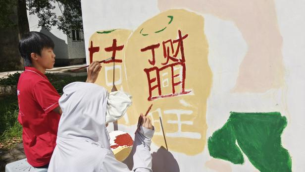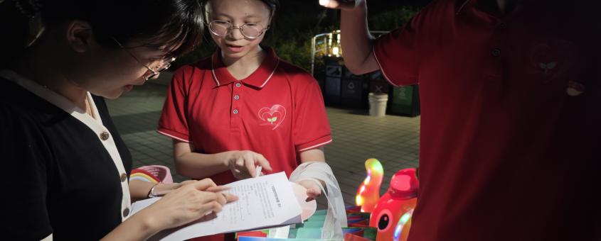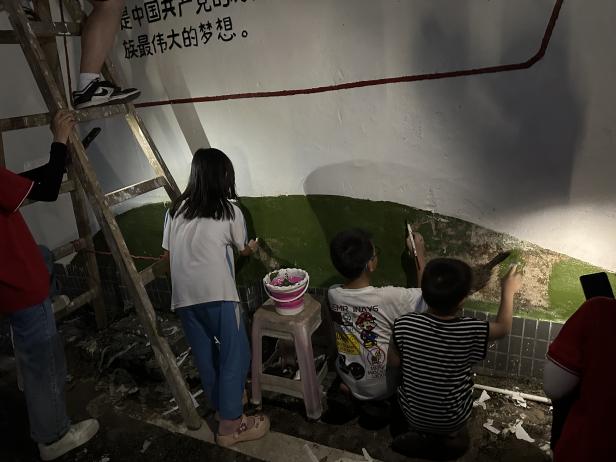 时间悄然流逝,夜幕降临之时,红星突击队的队员们也并未因此放慢脚步。他们依然坚守岗位,用画笔继续绘制着南溪村的红色记忆。在灯光的映照下,他们的身影显得格外坚定和执着。与此同时,红星突击队忙碌的身影也吸引着在附近嬉戏的小朋友。看着队员们拿着画笔涂鸦,小朋友们也带着纯真的笑容和无限的创意,与突击队的队员们一起为墙面涂色。他们的小手虽然稚嫩,但每一笔都充满了对美的追求和对家乡的热爱。