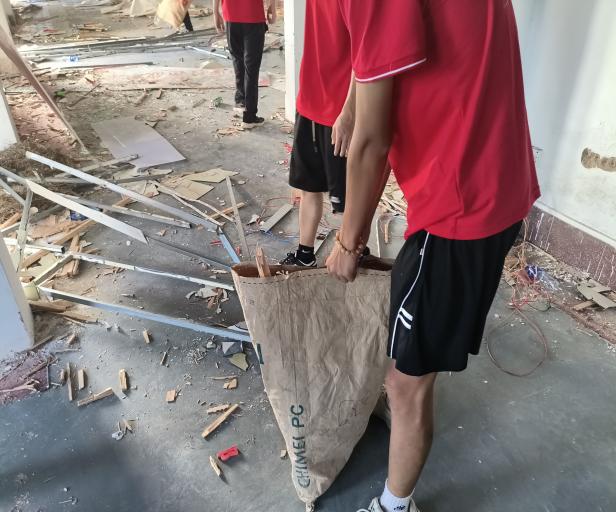 清晨,红星突击队的队员们身着统一服装,携带清扫工具来到了南溪村内积水严重的路段。他们分工明确,迅速行动,有的负责疏通排水口,有的则使用扫帚、铲子等工具清理路面淤泥和垃圾。在队员们的努力下,积水逐渐退去,路面恢复了往日的干净与整洁,为村民的出行提供了便利。随后,红星突击队继续清理附近厂区内堆积的建筑杂物。这些杂物不仅影响了厂区的整体美观,还可能成为安全隐患。为了改变这一现状,队员们再次分工协作,对厂区内的建筑垃圾进行了全面的清理。他们或徒手搬运重物,或利用扫把扫斗等工具清扫建筑碎片,在保证安全的前提下尽自己所能为绿美广东的生态建设尽绵薄之力。