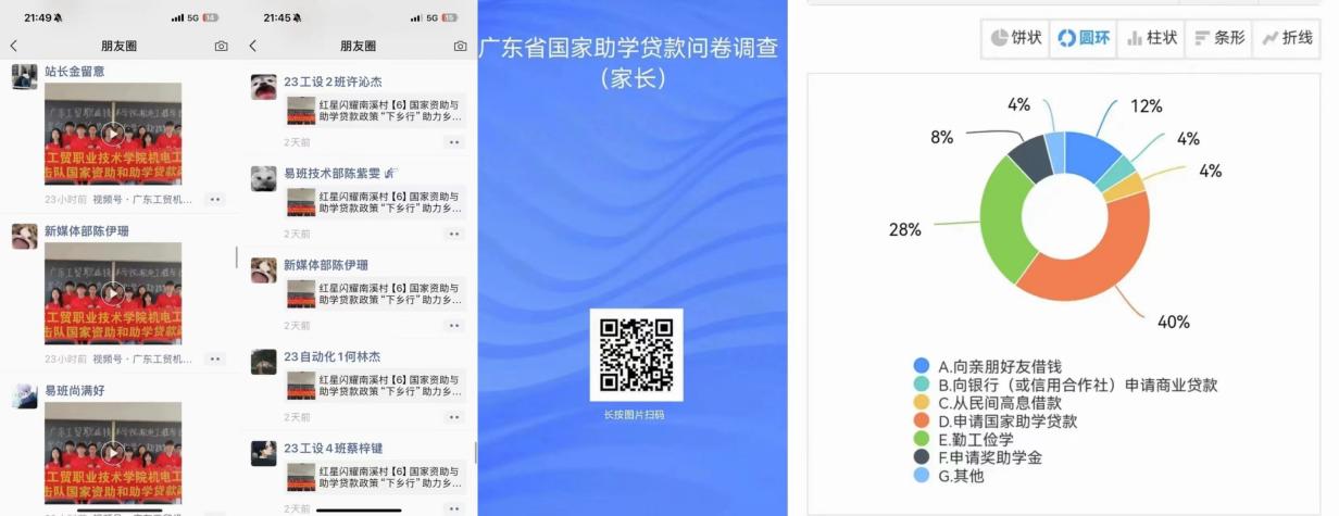 线上宣传:红星突击队积极探索网络宣传新模式,通过微信、微博、朋友圈、视频号等平台发布推文、微视频、科普短视频,每日推广宣传,扩大宣传覆盖面;利用易班轻应用开展“国家资助政策”知识竞赛活动,通过精准推送和互动分享,加深对资助政策的掌握程度;制作广东省国家助学贷款调查问卷线上二维码,这一举措极大地简化了问卷填写流程,让村民只需轻轻一扫即可完成问卷提交,同时,通过数据分析软件对收集到的数据进行汇总和分析,快速掌握群众的需求和反馈。