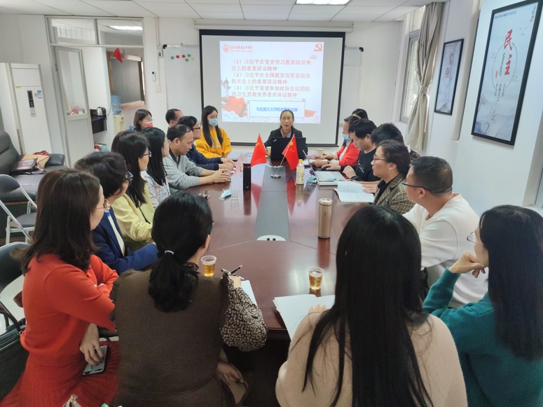 在党的百年华诞重大时刻,在“两个一百年”奋斗目标历史交汇关键节点,习近平总书记深刻阐述了开展党史学习教育的重大意义,系统回答了为什么学、学什么、如何学等重要问题,对党史学习教育进行了全面动员和部署,为开展好党史学习教育指明了方向。在学习中,李瑞清要求马院教师:一要重视党史学习,感悟马克思主义的真理力量和实践力量,发扬共产党人先进模范的顽强拼搏、忘我奉献精神;二要深刻学习领会新时代党的创新理论,将习近平新时代中国特色社会主义思想与党史学习教育相结合,融会贯通;三要以多种形式在思政课堂普及宣传党史知识,传承红色基因和革命薪火。