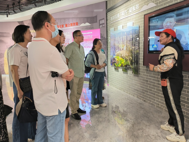 次日,我们走进美丽乡村连樟村。2018年10月23日,习近平总书记来到广东省清远英德市连江口镇连樟村,看望贫困群众,共商脱贫之计。时隔五年,当年的贫困村已然发生了巨大变化,我们沿着总书记的足迹,参观连樟村党群服务中心、现代农业产业园、乡村振兴产业园、乡村振兴学院等,感悟习近平总书记视察广东、清远重要讲话精神及丰富内涵,深入了解连樟村的脱贫攻坚和乡村振兴工作情况,切实感受到习近平总书记殷切期望下昔日贫困乡村的振兴发展新貌,深刻掌握以习近平同志为核心的党中央关于打赢脱贫攻坚战这一战略部署的重大意义。