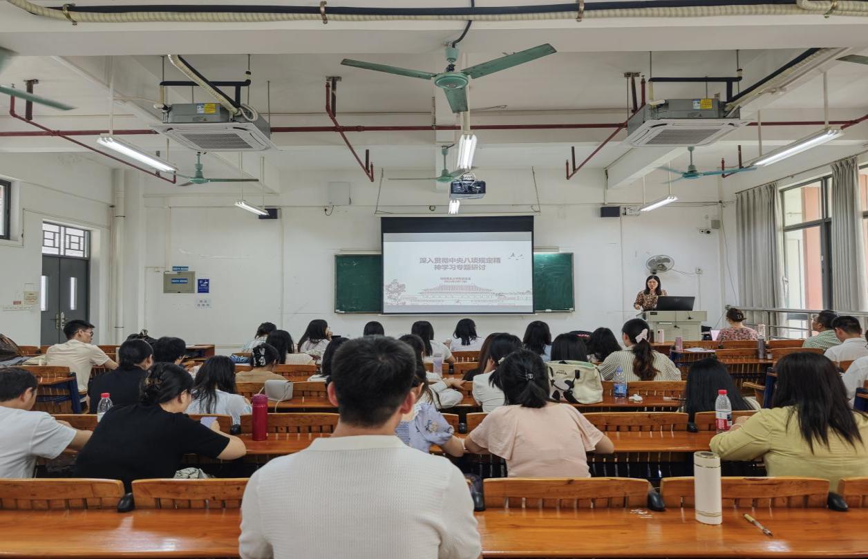2025年5月13日下午,马克思主义学院党总支在白云校区明德楼2区203教室召开深入贯彻中央八项规定精神学习专题研讨会,党总支书记张巧平主持会议,全体党员参加。