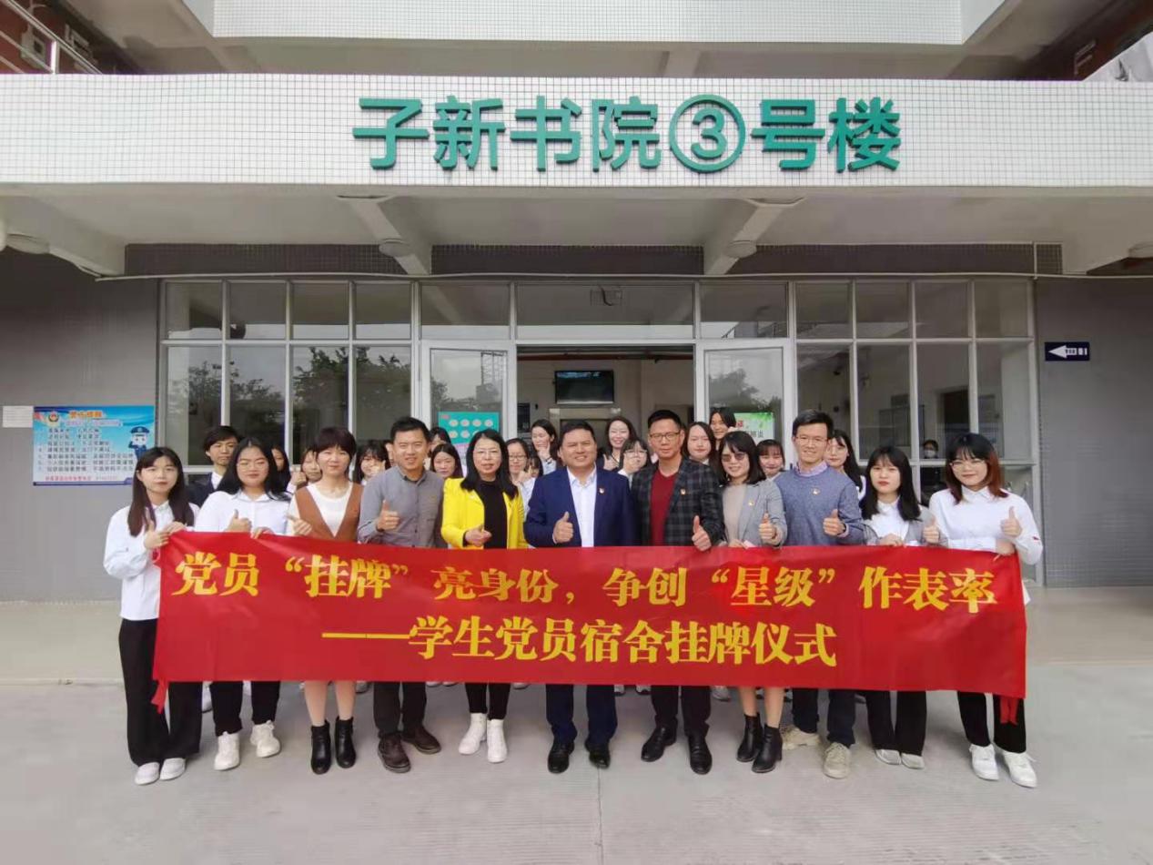 为进一步发挥学生党员在学习生活中的先锋模范作用,加强宿舍文化建设,3月11日,应用外语学院学生党支部在子新书院3号楼举行学生党员宿舍挂牌仪式。院党总支书记李德富、院长彭枚芳党总支副书记罗春科、学工办主任林耀佳、学生党支部书记陈晓玲、王燕玲以及全体学生党员参加本次活动。