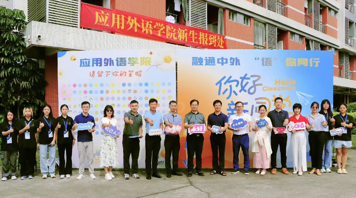 学院老师们的悉心答疑解惑、志愿者们的热情引导服务,让同学们感受到了外语大家庭的温暖。新生们争相在融通中外,“语”你同行展板签名留念。