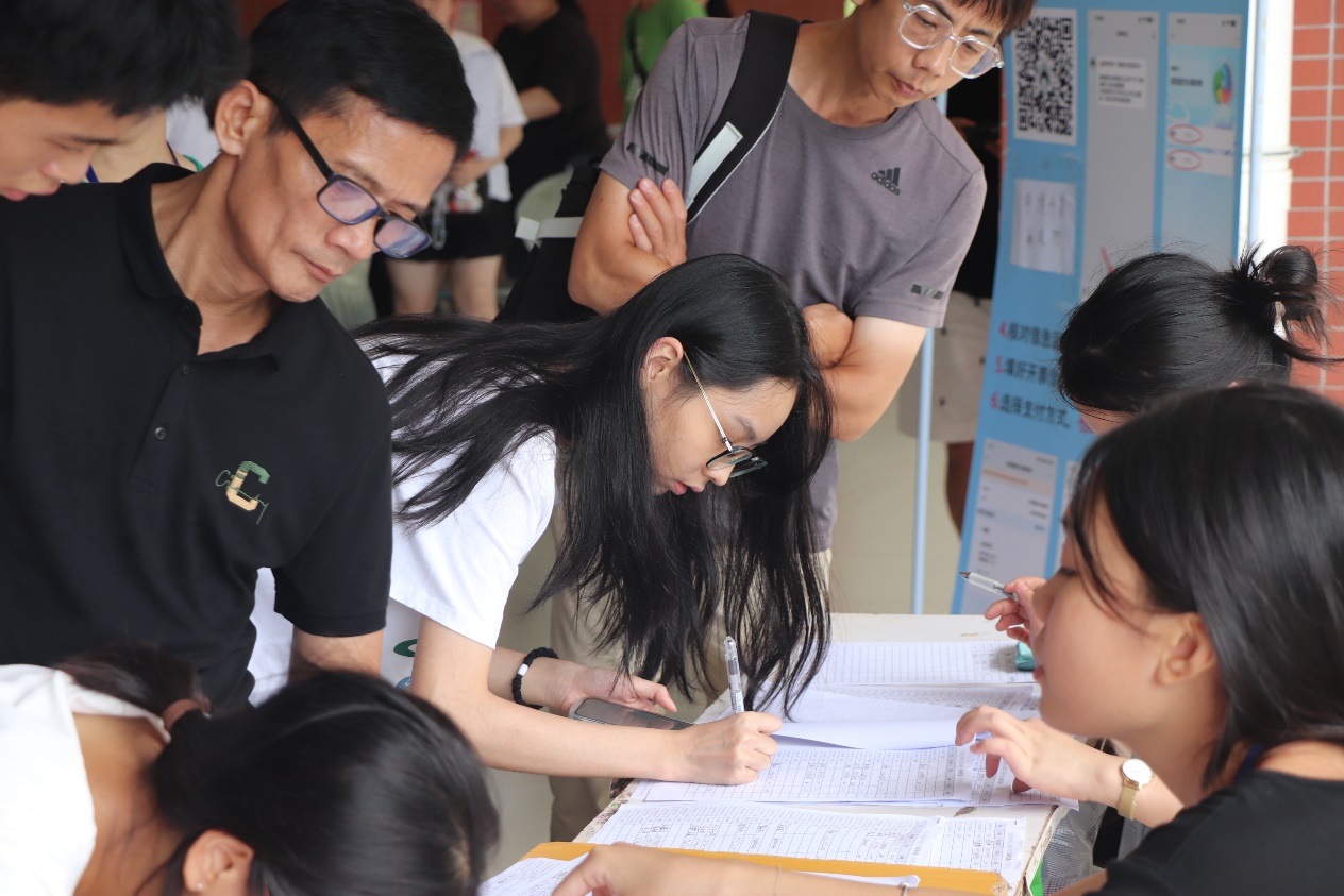 9月7日,应用外语学院迎来了2024级新生,在白云校区宿舍2栋新生报到点现场,高挂的横幅、欢迎的标语、醒目的迎新宣传,每个人脸上都洋溢着喜悦的笑容。为迎接2024级新生的到来,更好的展现外语学子的精神面貌,应用外语学院党总支临时负责人罗春科、学工办主任林耀佳及全体辅导员和新生班主任现场部署指导 “绿色通道”、新生班主任见面、宿舍钥匙分配、志愿者分工等工作,提前注册招募500名志愿者协助2024级新生开展报到指引和行李搬运,完成迎新工作。