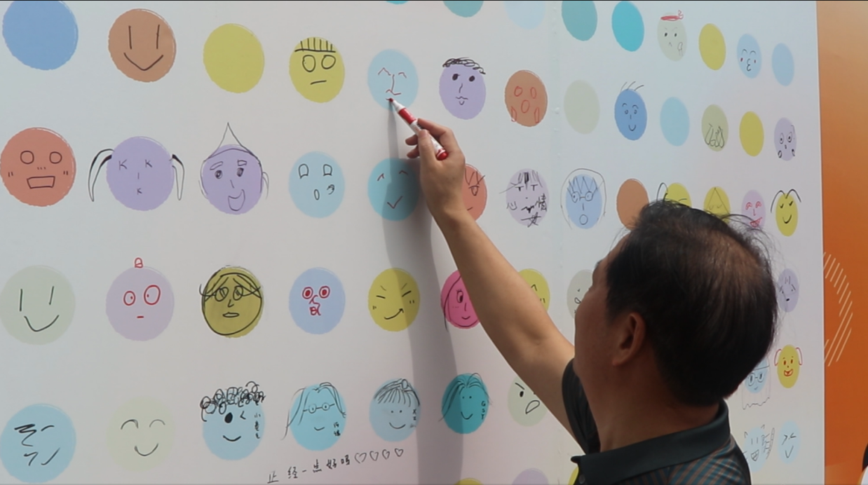 何汉武书记在“留下你的笑脸”展板上画出心情
