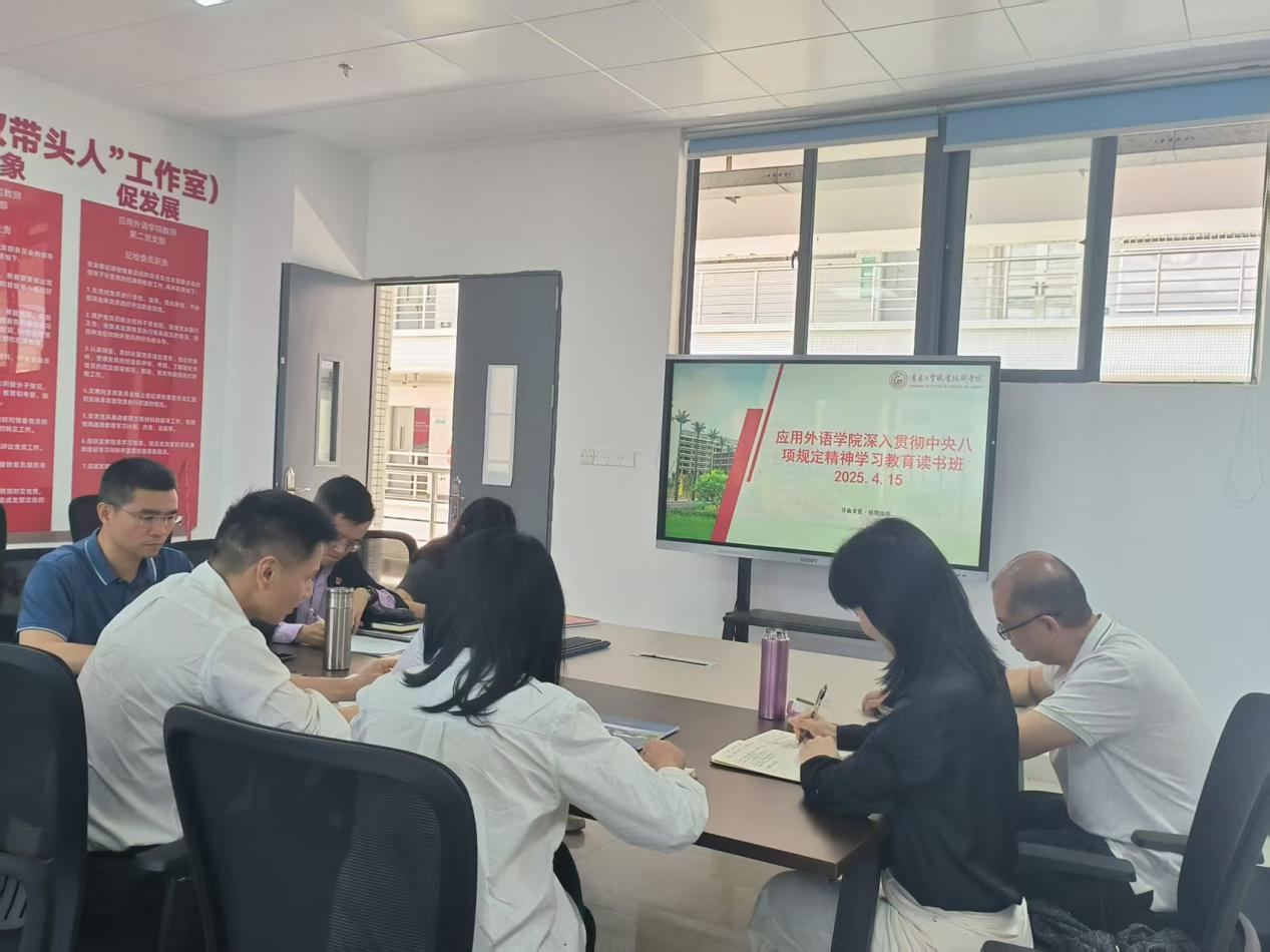 为深入学习贯彻习近平总书记关于党的作风建设重要思想,推动深入贯彻中央八项规定精神学习教育落地生根,外语学院于4月15日召开了“深入贯彻中央八项规定精神学习教育读书班”开班式,学院党政领导班子及党总支支委参加此次读书班。