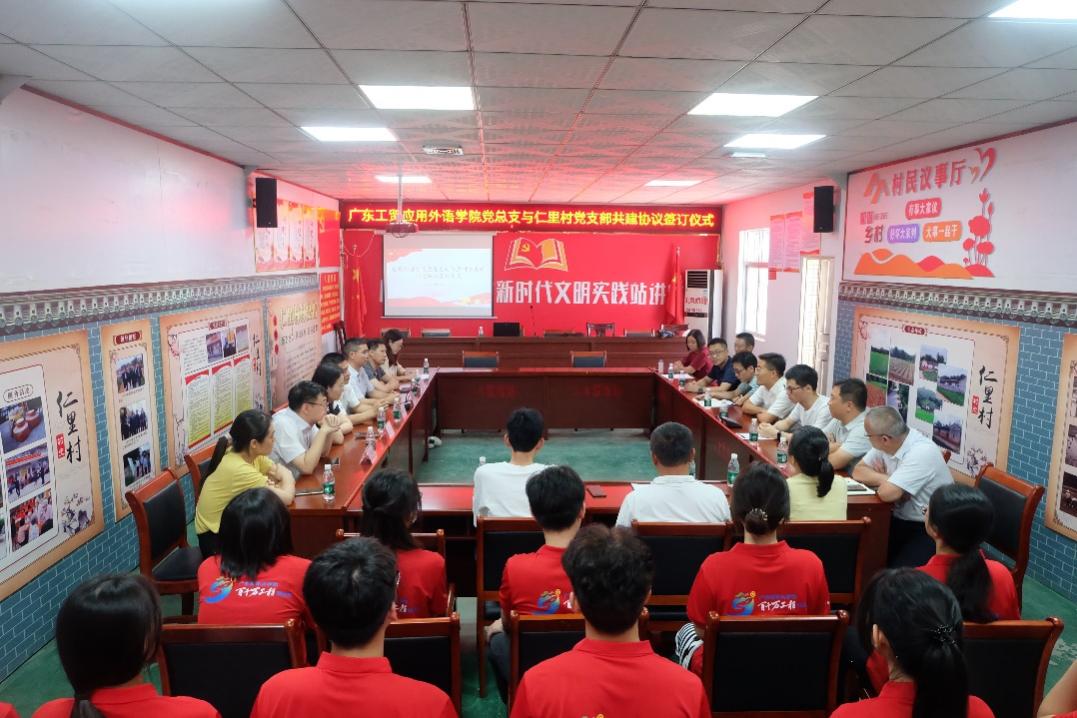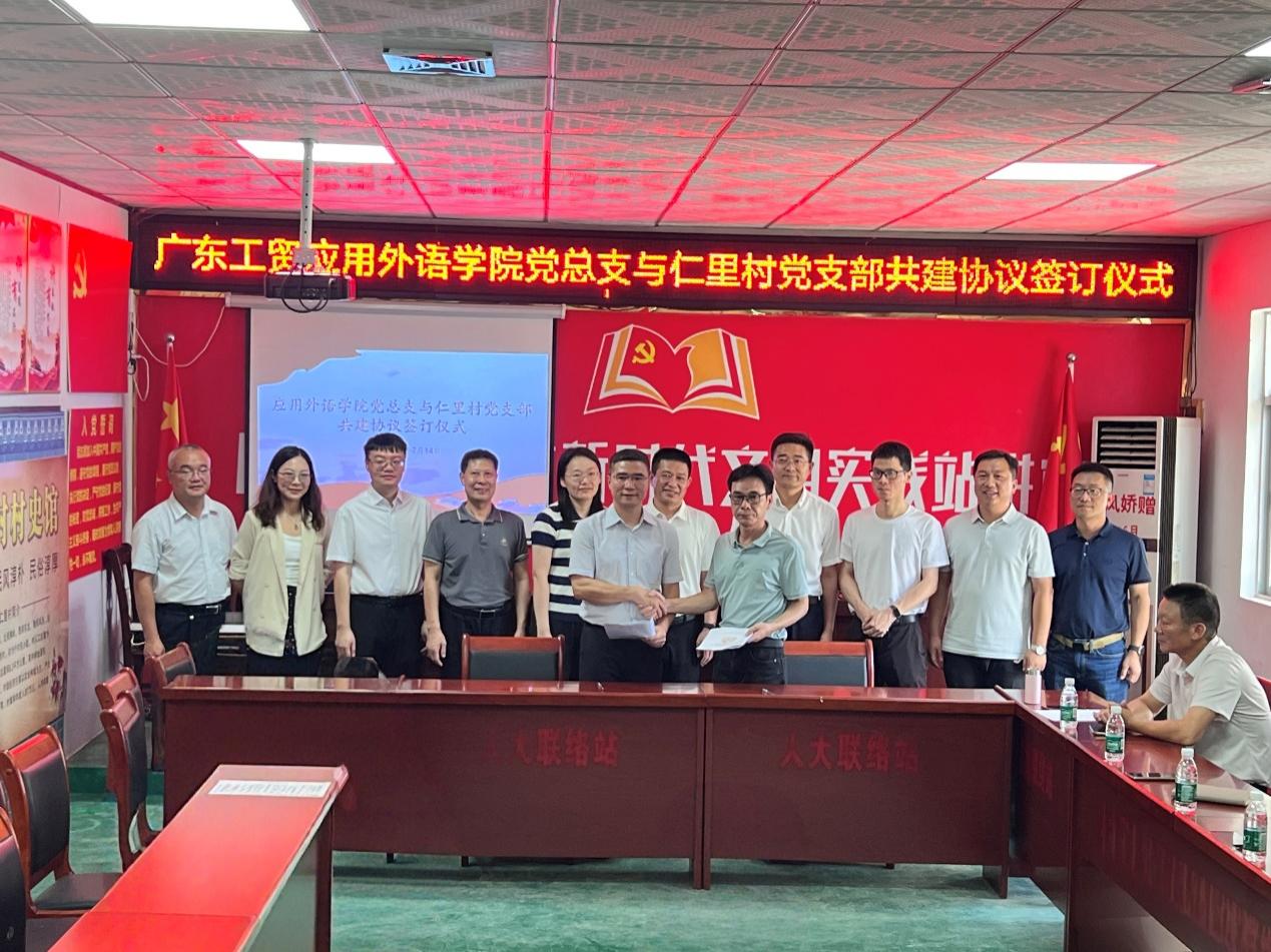 签约仪式上,应用外语学院党总支与仁里村党支部代表共同签署党建结对共建协议。双方就组织建设、学业帮扶、志愿服务、资源共享等共建方向达成共识。唐毓秋副校长表示,高校党组织与乡村党支部结对共建,是落实广东省“百县千镇万村高质量发展工程”的具体举措,365英国上市官网在线将充分发挥优势,鼓励师生深入乡村,用实际行动助力仁里村振兴。