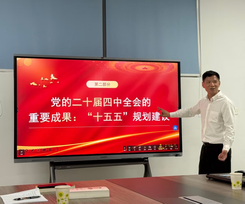 为深入学习贯彻党的二十届四中全会精神,切实把思想和行动统一到党中央决策部署上来,11月24日上午,应用外语学院在白云校区行知楼606教室举行党的二十届四中全会精神专题宣讲会。学院党总支书记罗春科以《把党的领导贯穿经济社会发展各方面全过程》为题作报告,学院党政班子成员、师生党支部书记、各系主任及全体辅导员参加会议。