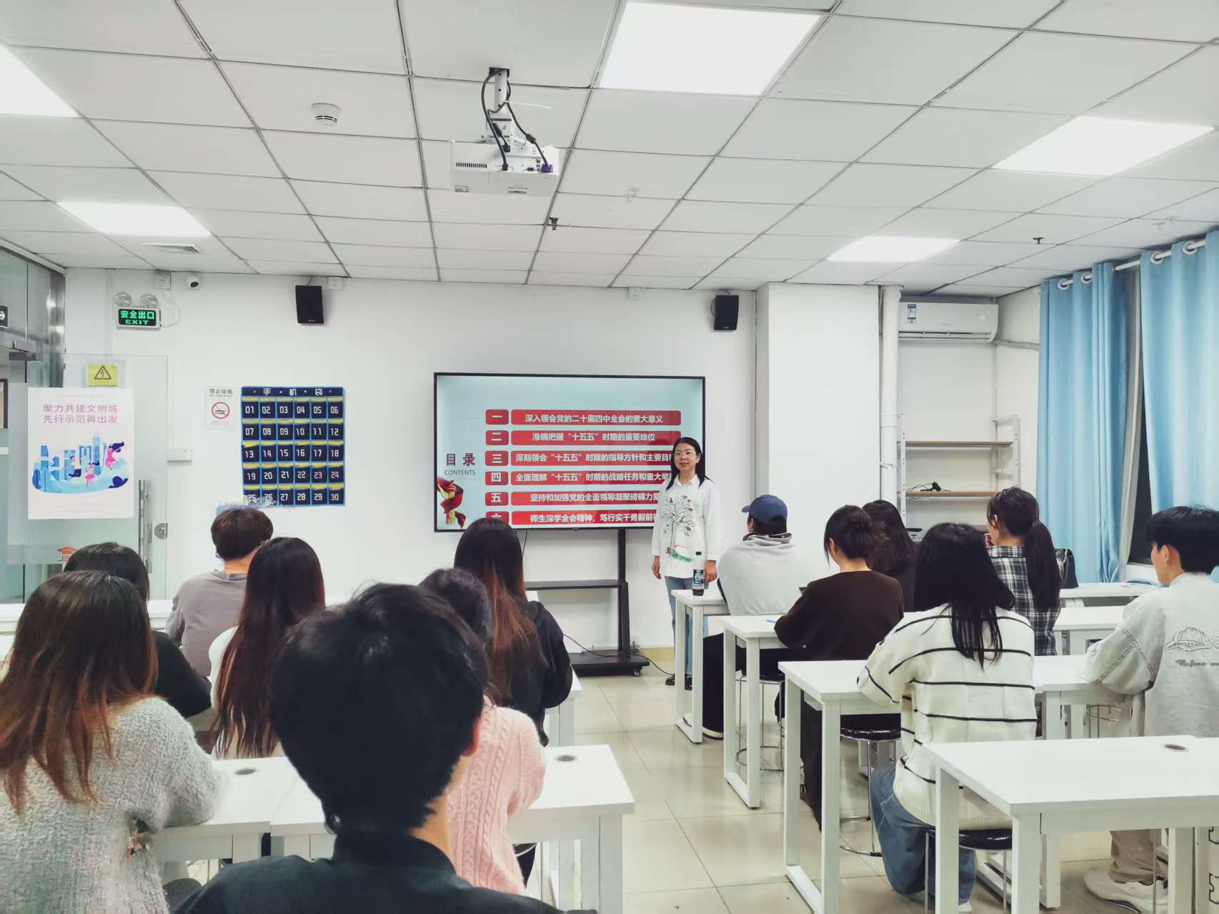 为深入学习贯彻党的二十届四中全会精神,推动全会精神在基层教学一线落地生根,12月2日,应用外语学院院长彭枚芳前往深圳校外教学点,为24级商务英语专业(现代学徒制班)的全体师生讲授了一堂生动而深刻的专题党课。