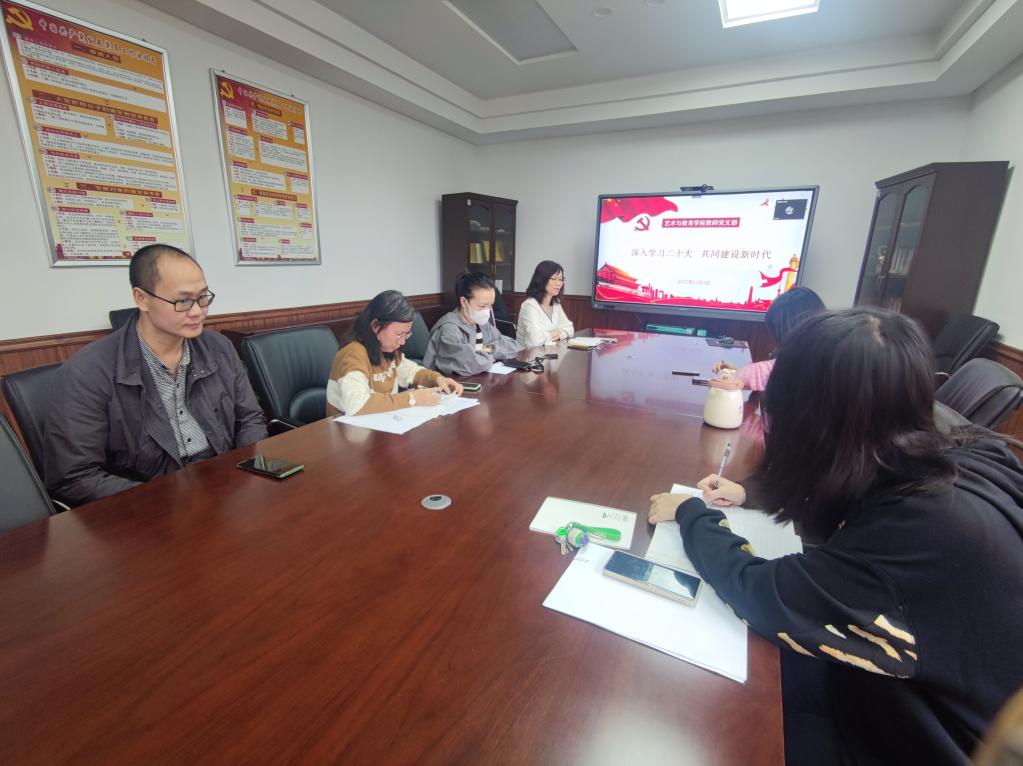 11月8日下午,艺术与教育学院教师党支部在爱校楼501召开党支部会议,组织深入学习党的二十大报告。会议由支部书记区翠梅主持,艺教学院党总支书记沈彬及支部全体党员采用线下与线上相结合的方式参加。