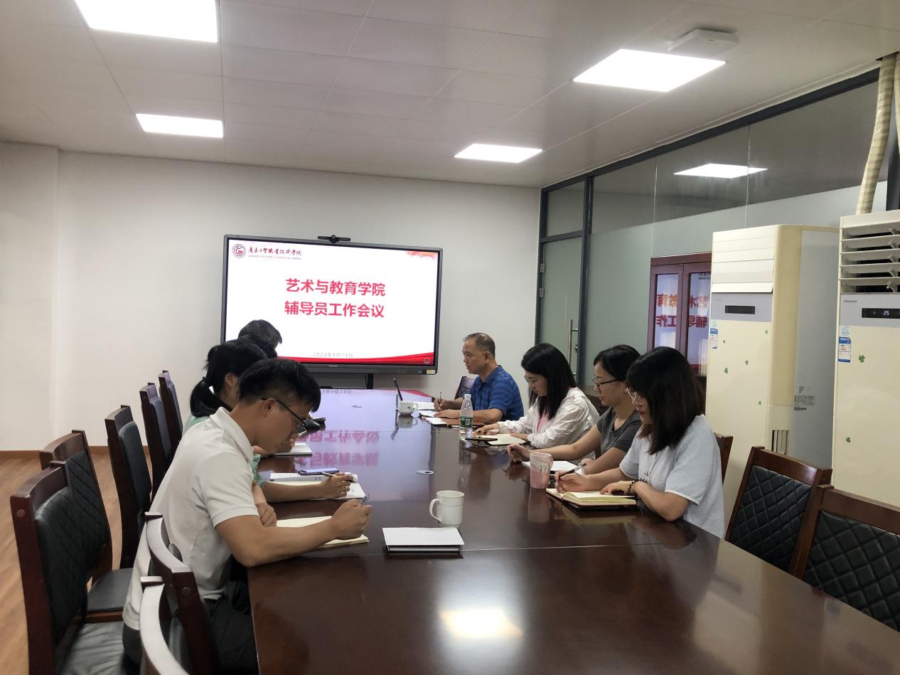 9月13日,艺术与教育学院召开了辅导员工作会议,研究和布置秋季学期辅导员工作。艺教学院党总支临时负责人叶宜同,学工办主任谭武及全体辅导员参加会议,会议由谭武主持。