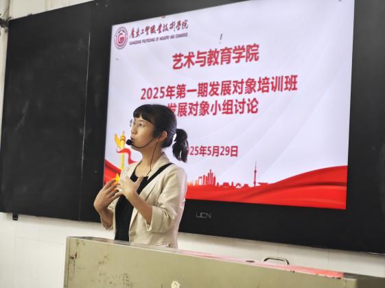 2025年5月29日晚上,艺教学院党总支在笃学楼401教室组织开展了2025年第一期党员发展对象培训班小组学习讨论会。