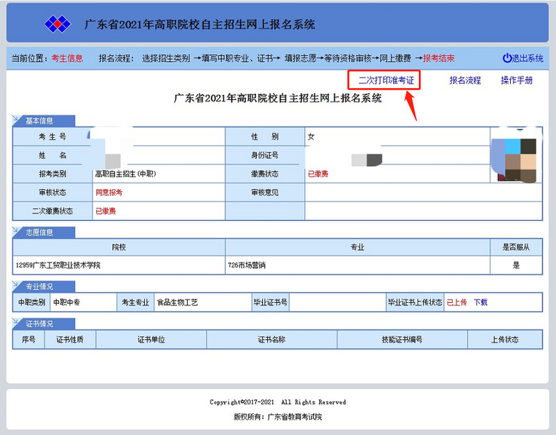 365官网自主招生准考证全部通过广东省自主招生报名系统网上直接打印(https://www.eeagd.edu.cn/gzks)。入围职业技能考核的考生,并缴费成功获得考试资格后方可打印。